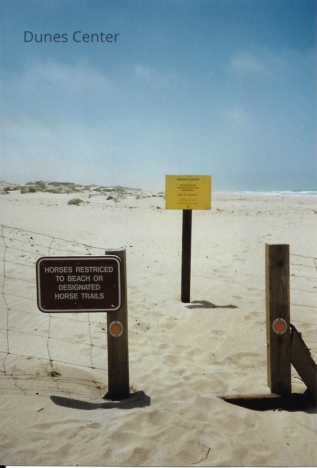 Instalation of Warning Signs concerning nearby Unocal's Guadalupe Oil Fields contamination of water and sands at Oceano Dunes SVRA, in photo album, Undated 3.5" x 5" color photograph
