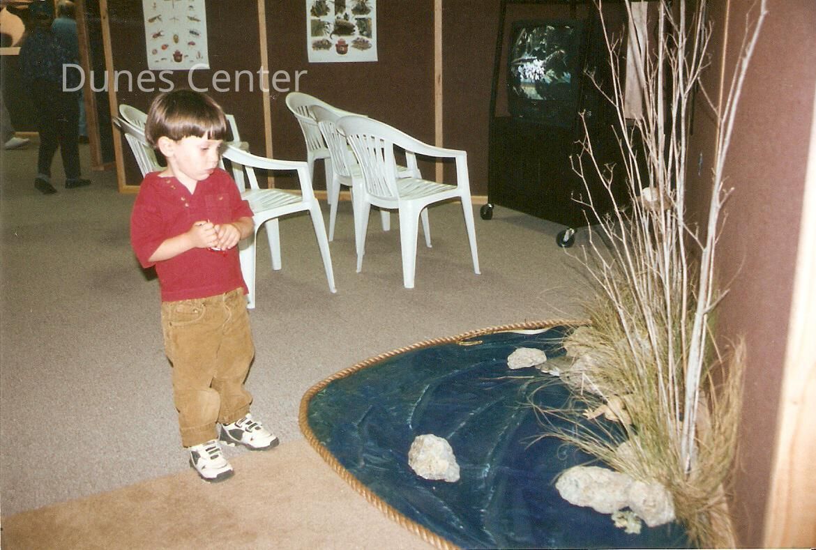 Dunes Discovery Center grand opening 10/13/96. A boy enjoys Naomi Hoffman's pond.