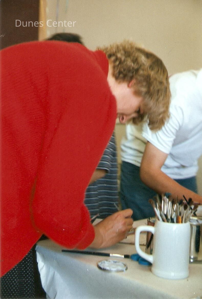 Dunes Discovery Center grand opening 10/13/96. Visitors painting mural.
