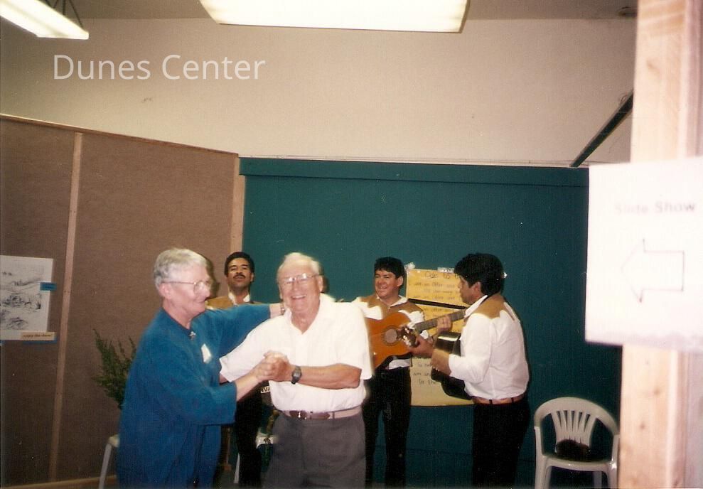 Dunes Discovery Center grand opening 10/13/96. Ernie Glenesk dances with Carla Levesque.