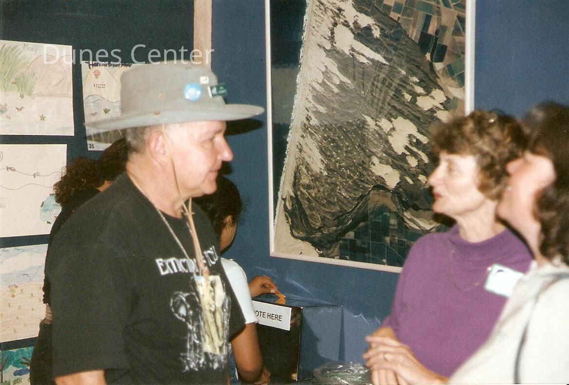 Dunes Discovery Center grand opening 10/13/96. Hal Schartz talks with Kathy Schartz and Karen Geer while a visitor Votes for the children's poster contest.