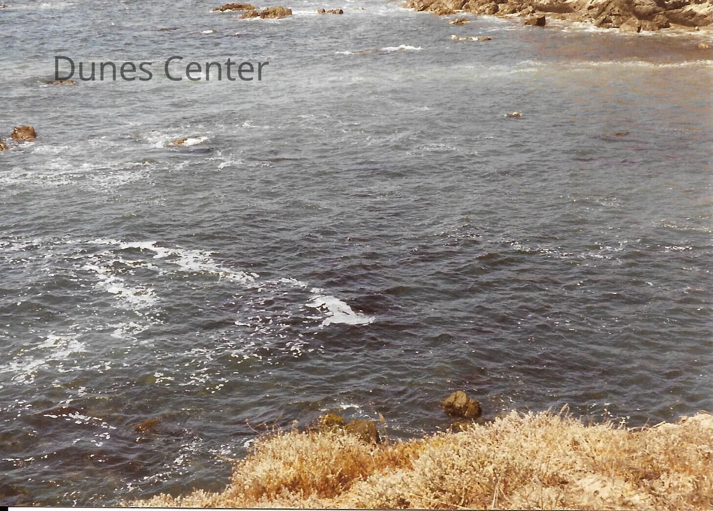 View from Pecho Coast Trail above Port San Luis Pier, The Nature Conservancy hike, in photo album from Joyce Hall - Undated 3.5" x 5" color photographEntry/Object ID
