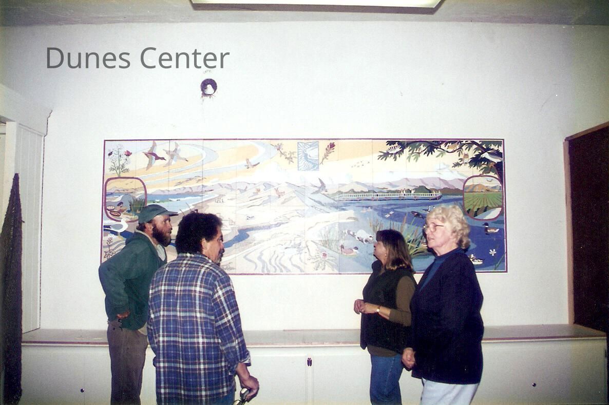 Dunes Discovery Center mural installation 11/96. John Lwerks, Manny Lopez, Karen Wood, and Naomi Hoffman.