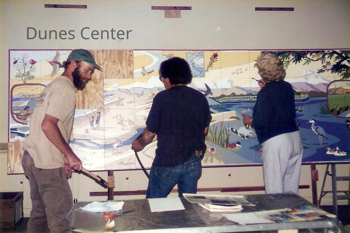 Dunes Discovery Center mural installation 11/96. John Lwerks, Manny Lopez, and Naomi Hoffman.