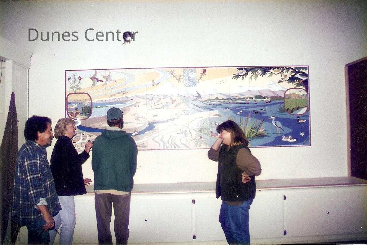 Dunes Discovery Center mural installation 11/96. Manny Lopez, Naomi Hoffman, John Lwerks, and Karen Wood.