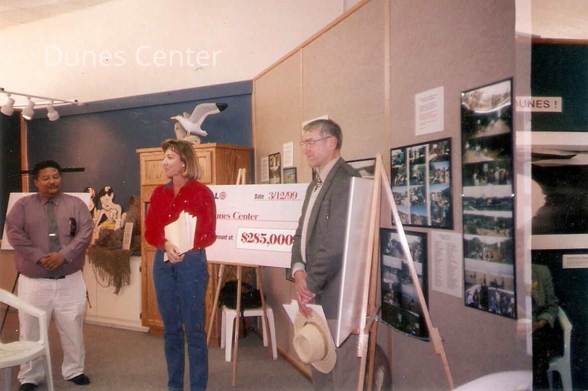 Presentation of Unocal Mitigation Funds 3/99. Sam Arca (Mayor of Guadalupe), Jennifer Briggs (Santa Barbara County Parks), Tom Urbanske (Santa Barbara County Supervisor).