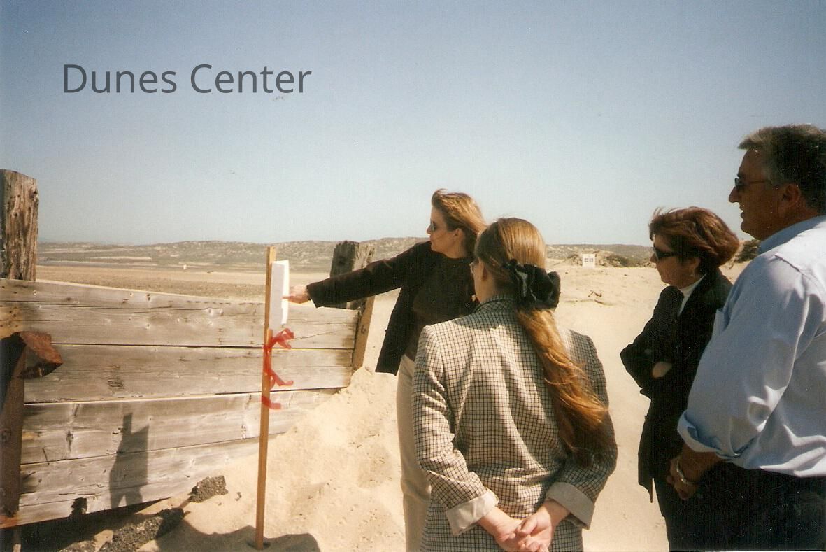 Presentation of Unocal Mitigation Funds 3/99. Kara Smith of TNC points out where Unocal Mitigation Funds will be used at Guadalupe Beach.