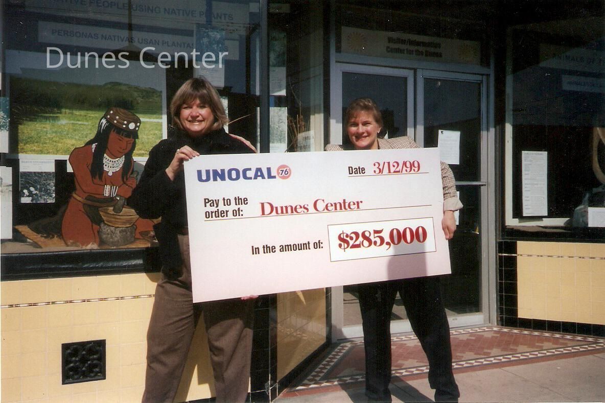 Presentation of Unocal Mitigation Funds 3/99. Jeanne Sparks and Karen Wood with Unocal Mitigation check going to the bank.