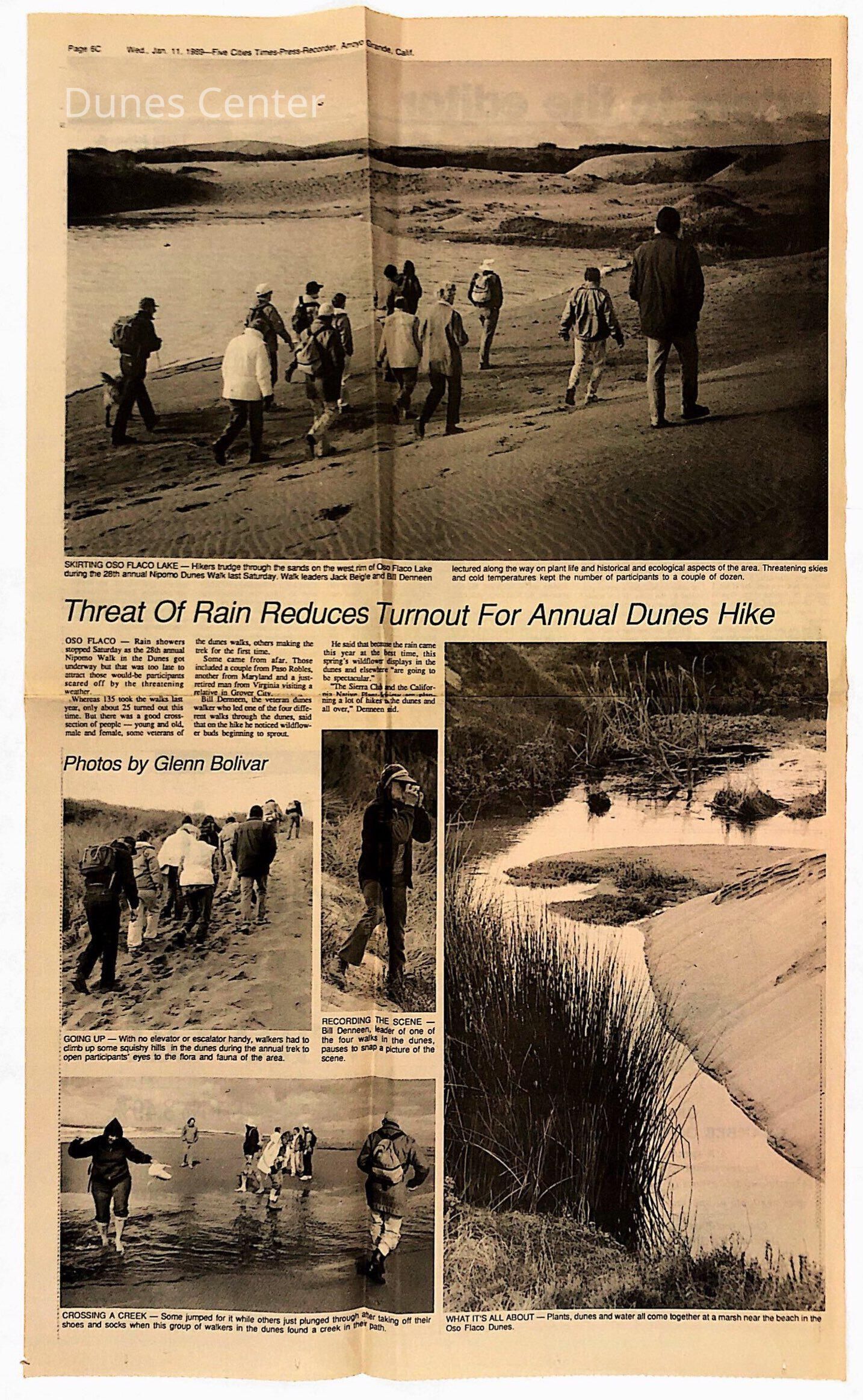 "Threat of Rain Reduces Turnout for Annual Dunes Hike" Wednesday, January 11, 1989 Five Cities Times-Press-Recorder, Arroyo Grande, CA