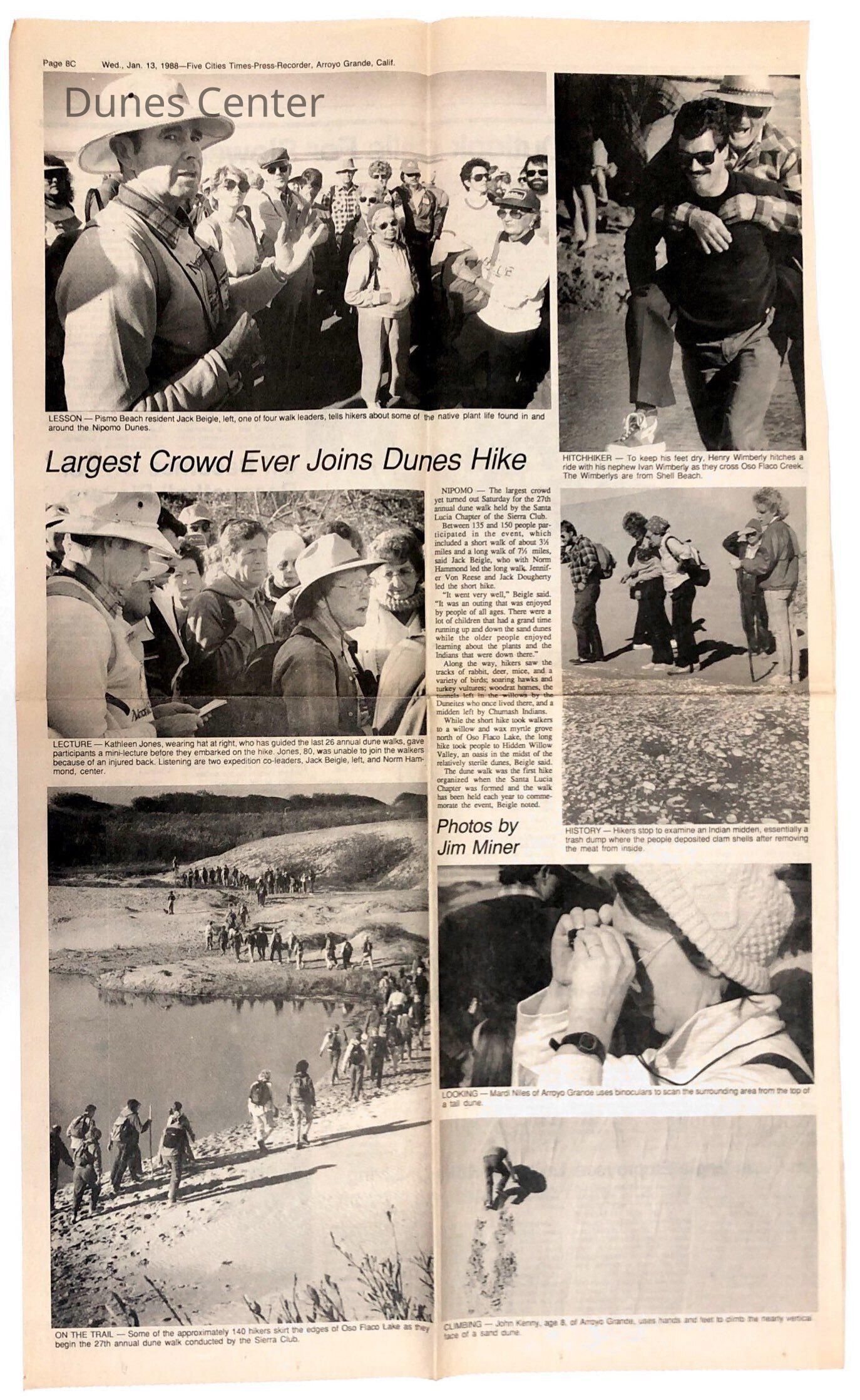 "Largest Crowd Ever Joins Dunes Hike" Wednesday, Photos with article by Jim Miner, January 13, 1988, Five Cities Times-Press-Recorder, Arroyo Grande, CA