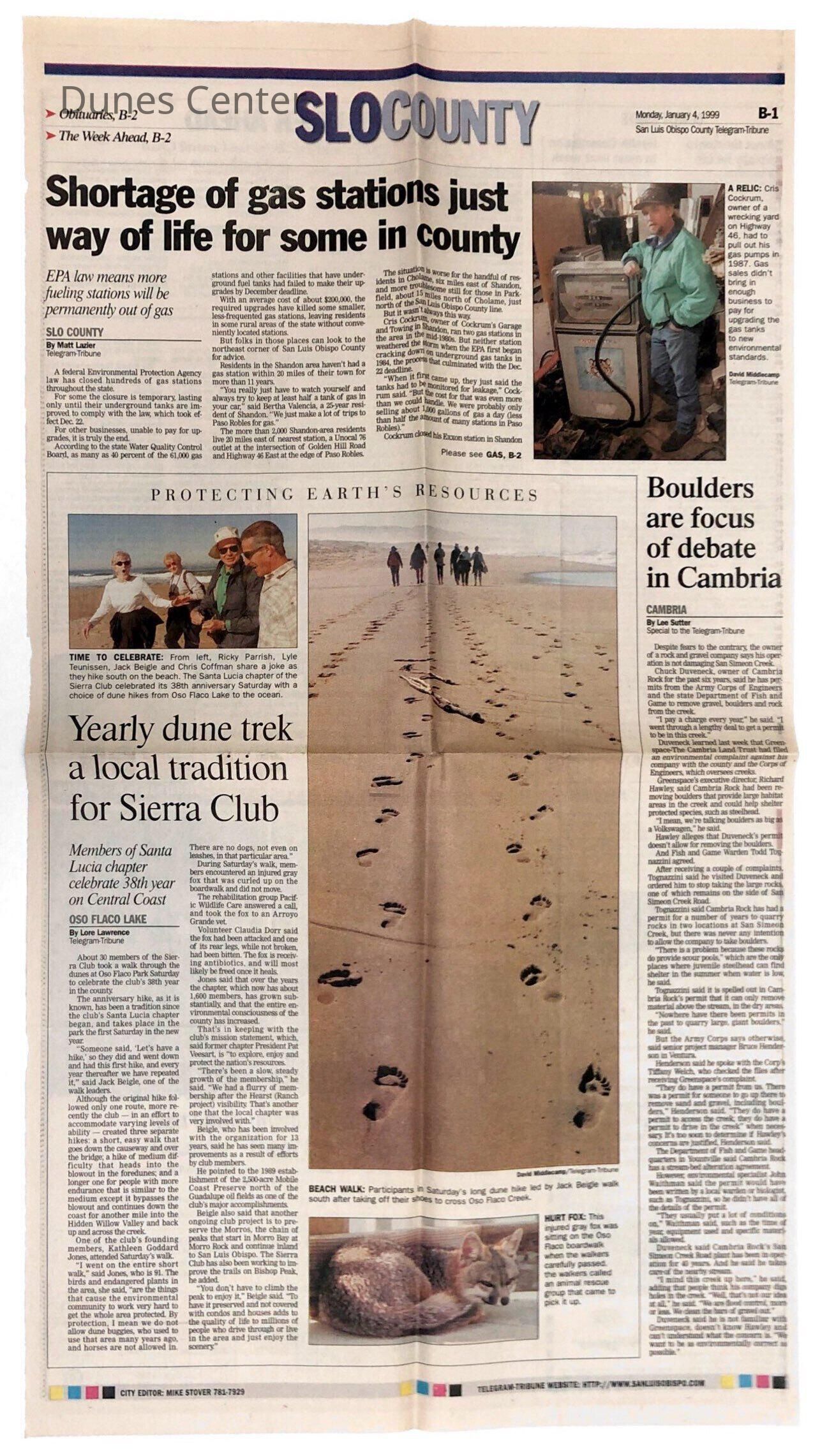 "Yearly dune trek a local tradition for Sierra Club",Artcile by Lore Lawrence, Monday, January 4, 1999, SLOCounty, San Luis Obsipo County Telegram-Tribune