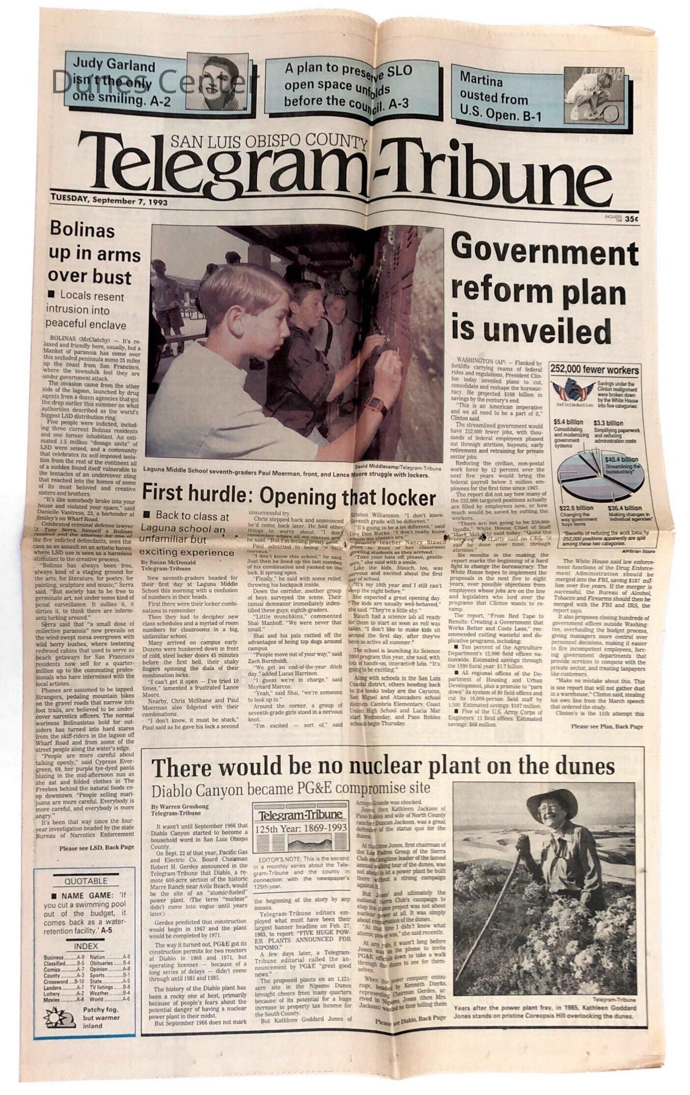 "There would be no nuclear plant on the dunes, Diablo Canyon became PG&E compromise site" Article by Warren Groshong, Tuesday, September 7, San Luis Obsipo County Telegram-Tribune - 1993Entry/Object ID