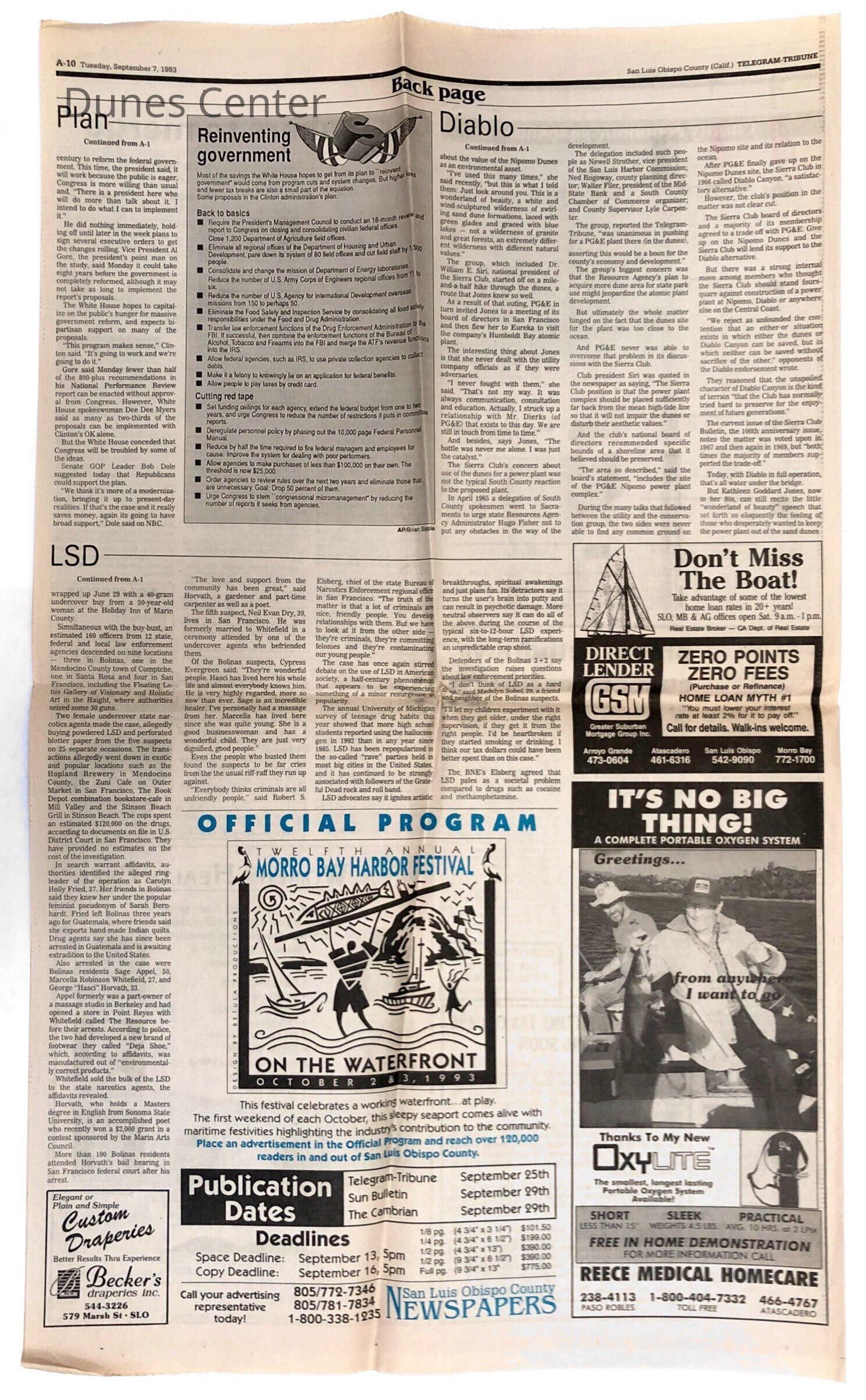 "There would be no nuclear plant on the dunes, Diablo Canyon became PG&E compromise site" Article by Warren Groshong, Tuesday, September 7, 1993, San Luis Obsipo County Telegram-Tribune