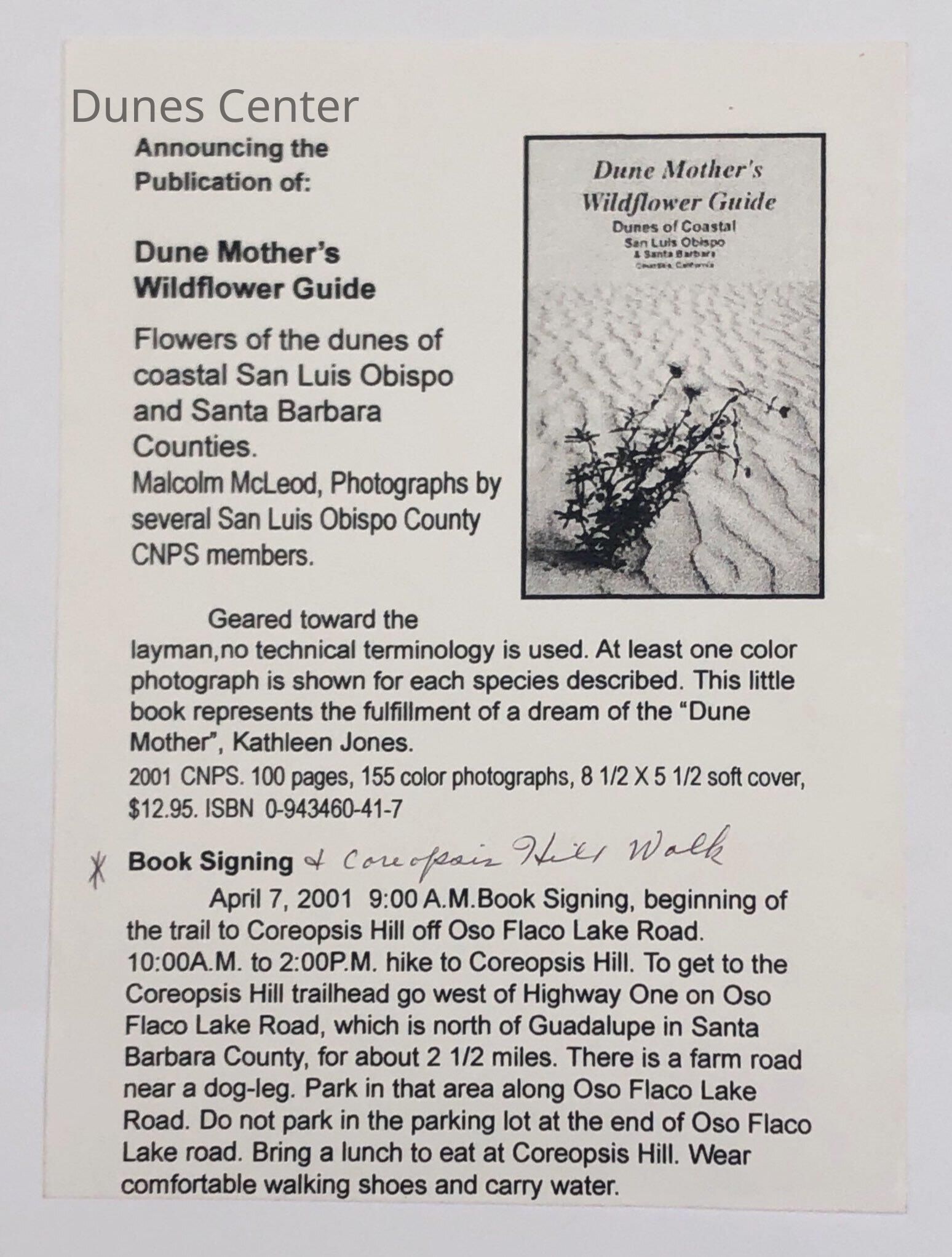 Announcemnet of Publication of: "Dune Mother's Wildflower Guide" by Malcolm McLeodEntry/Object ID