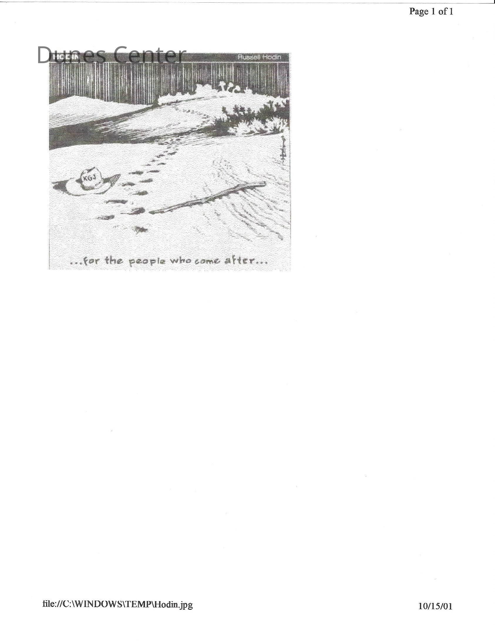 Comic by Russell Hodin 10/15/01 in memory of Kathleen Goddard Jones