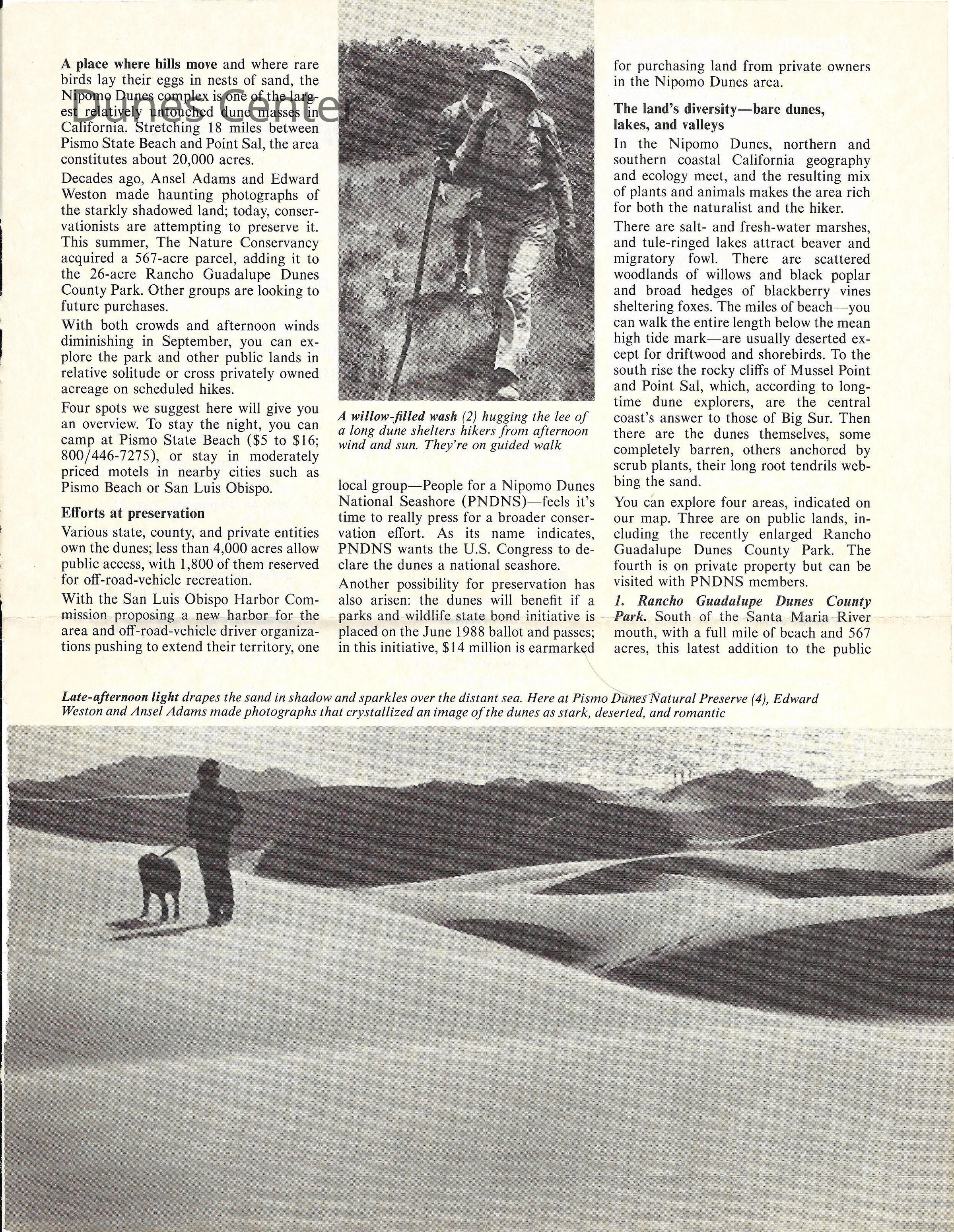 Sunset Magazine, "Where hills move and photographers have a field day: Nipomo Dunes" pages 10-13, September 1987