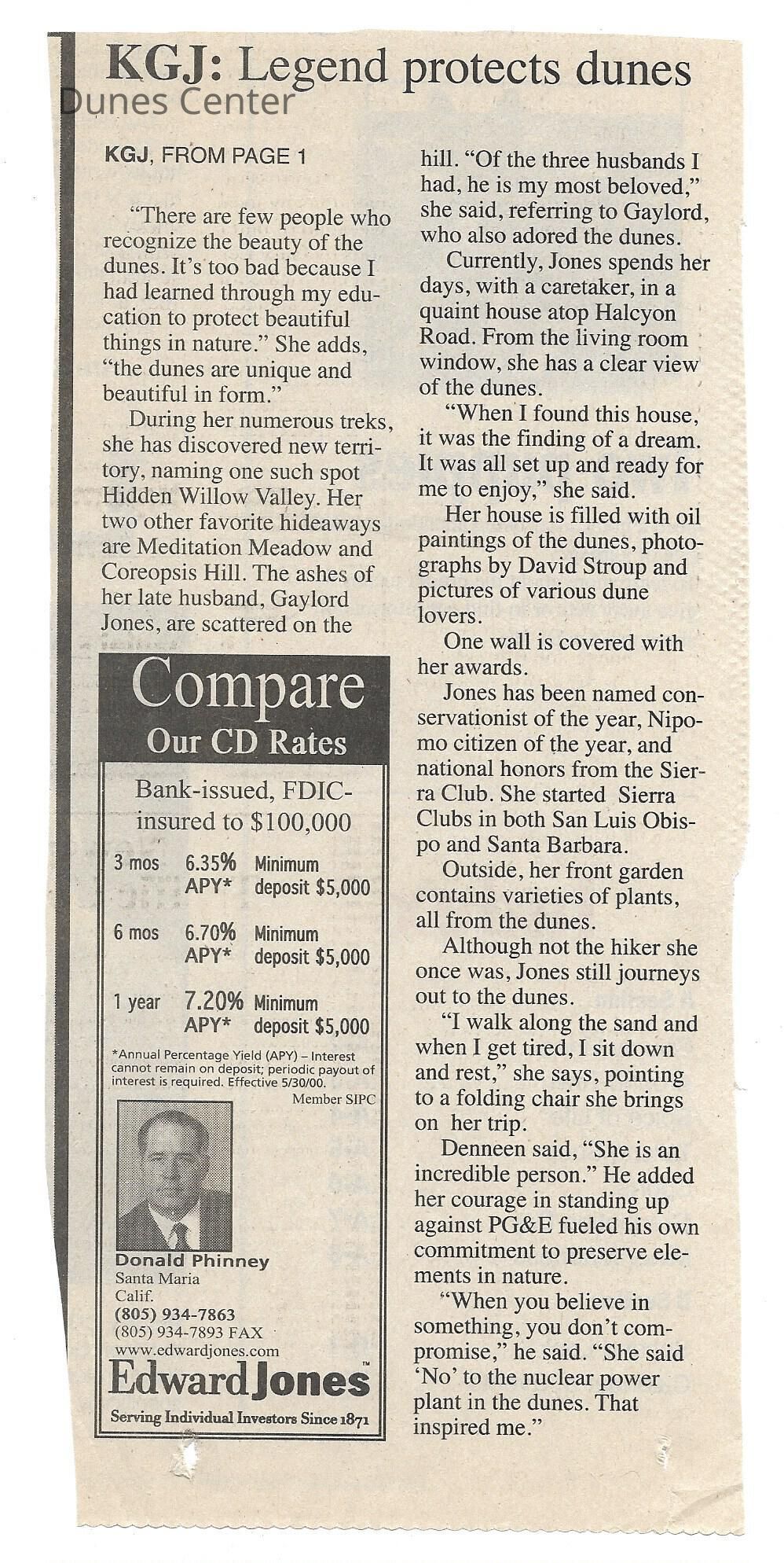 "KGJ: Legend protects dunes" clipping of continuation of an article, undatedEntry/Object ID