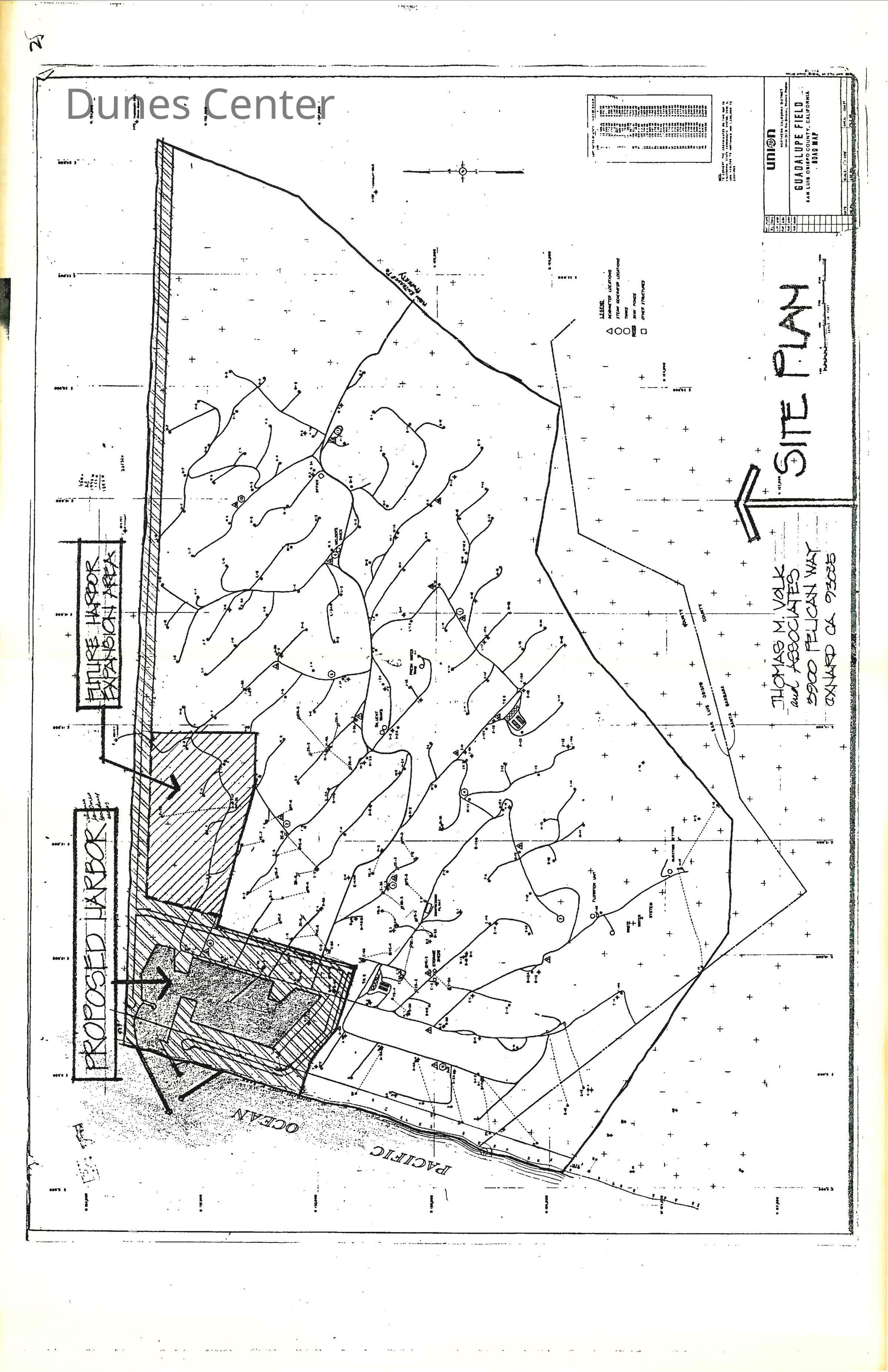 Site Plan from Unocal-Volk map, contains exisiting oil wells, roads, and the proposed harbor location and the future harbor expansion area.