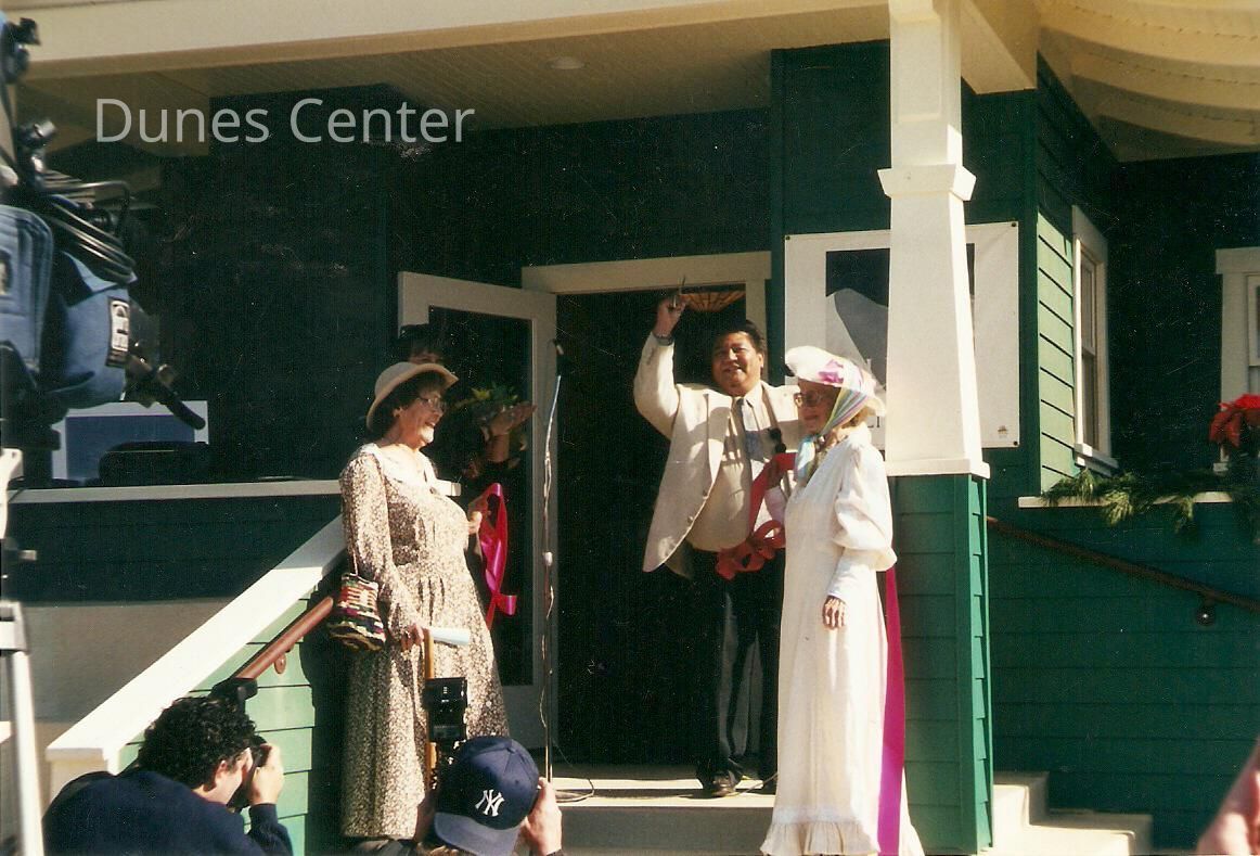 Grand Opening of Dunes Center 12/2000. Mayor Sam Arca cutting ribbon, L-R Suzie Somerset, Karen Wood, Sam Arca, Lynetta Perry