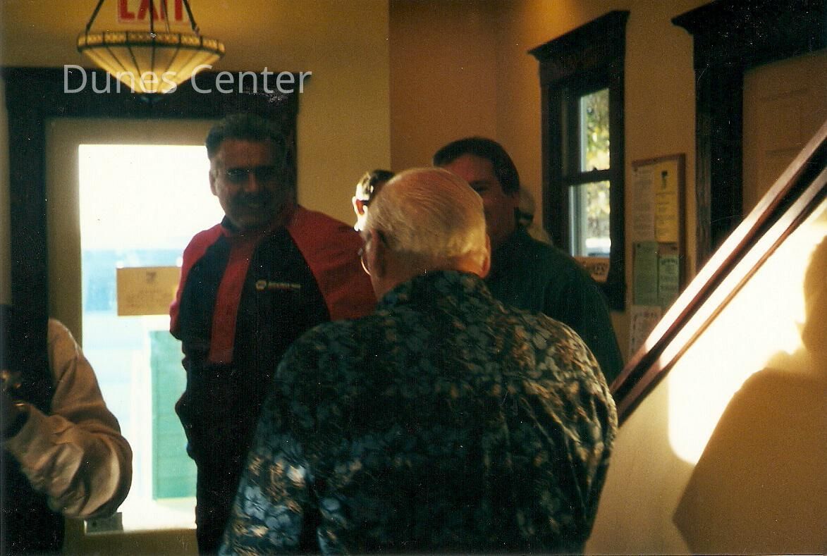 Karen Wood Retirement Party March 2001, John Perry, Ernie Glenesk (back); photograph by R. Spellman. 4" x 6" color photograph
