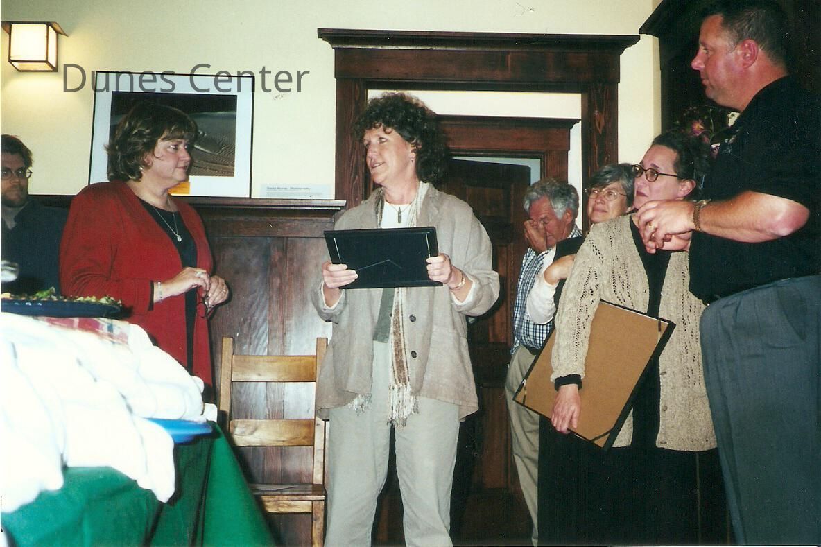 Karen Wood Retirement Party March 2001, James Spellman, Karen Wood, Nancy Dreher, Art Cooley, Liz Scott-Graham, Nancy Robins, Jim Anderson by R. Spellman. 4" x 6" color photographCollection