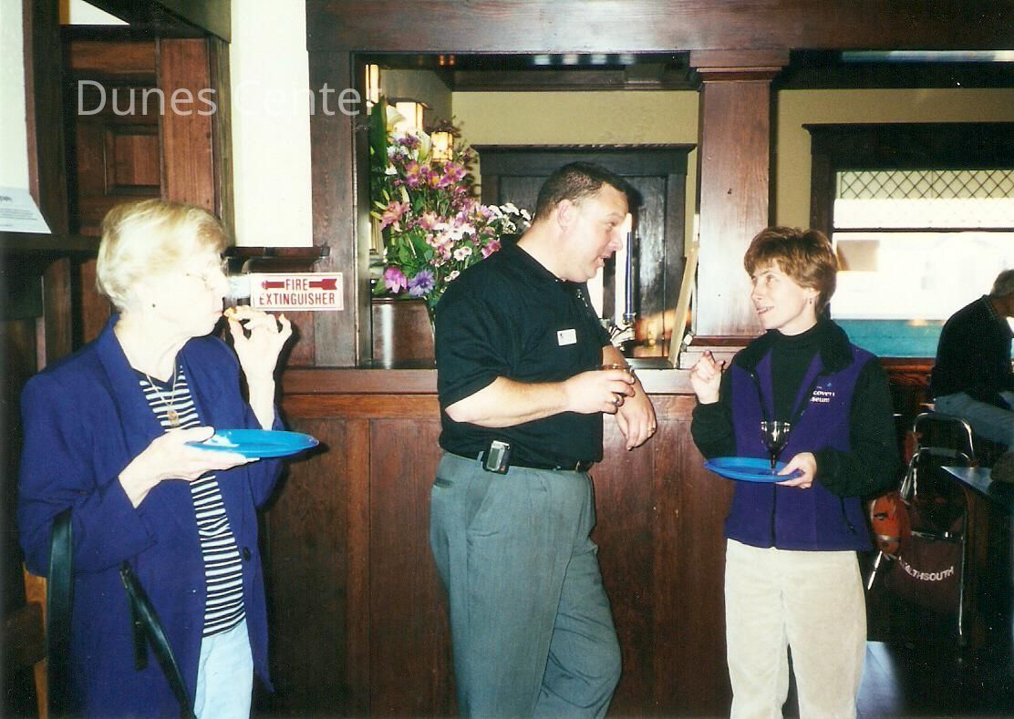 Karen Wood Retirement Party March 2001; Nita Gibson, Jim Anderson, Stephanie Wald by R. Spellman. 4" x 6" color photograph