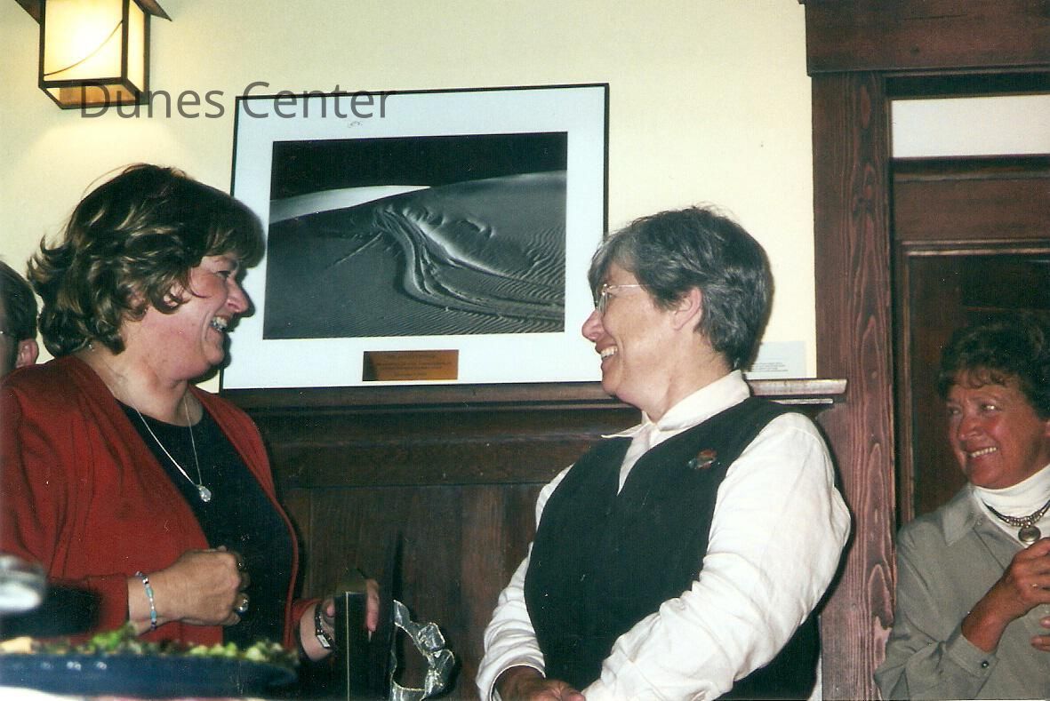 Karen Wood Retirement Party March 2001; Karen Wood, Liz Scott Graham, Nancy Cooley by R. Spellman. 4" x 6" color photograph