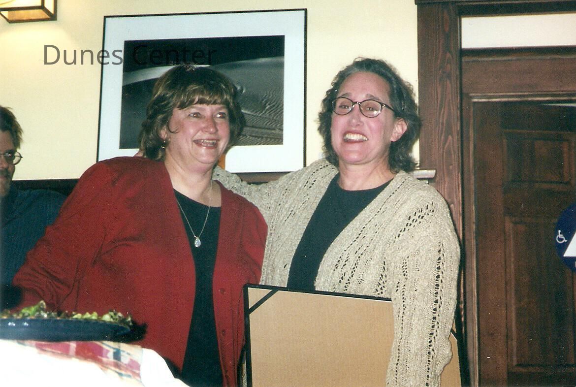 Karen Wood Retirement Party March 2001; Karen Wood, Nancy Robins by R. Spellman. 4" x 6" color photograph