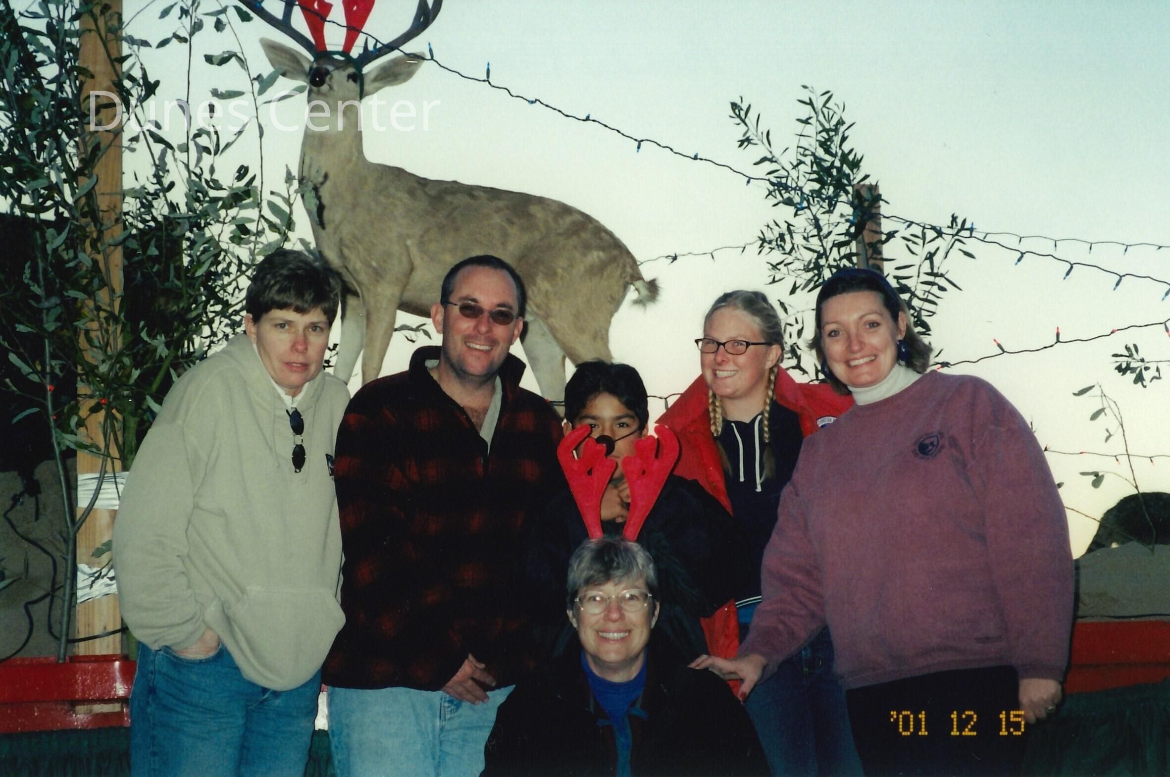 Guadalupe Christmas Parade, Cindy Ransik, Chris Barr, two local children, Gillian Andrews, (front) Liz Scott-Graham, 4" x 6" color photograph. Photograph dated December 2001Collection