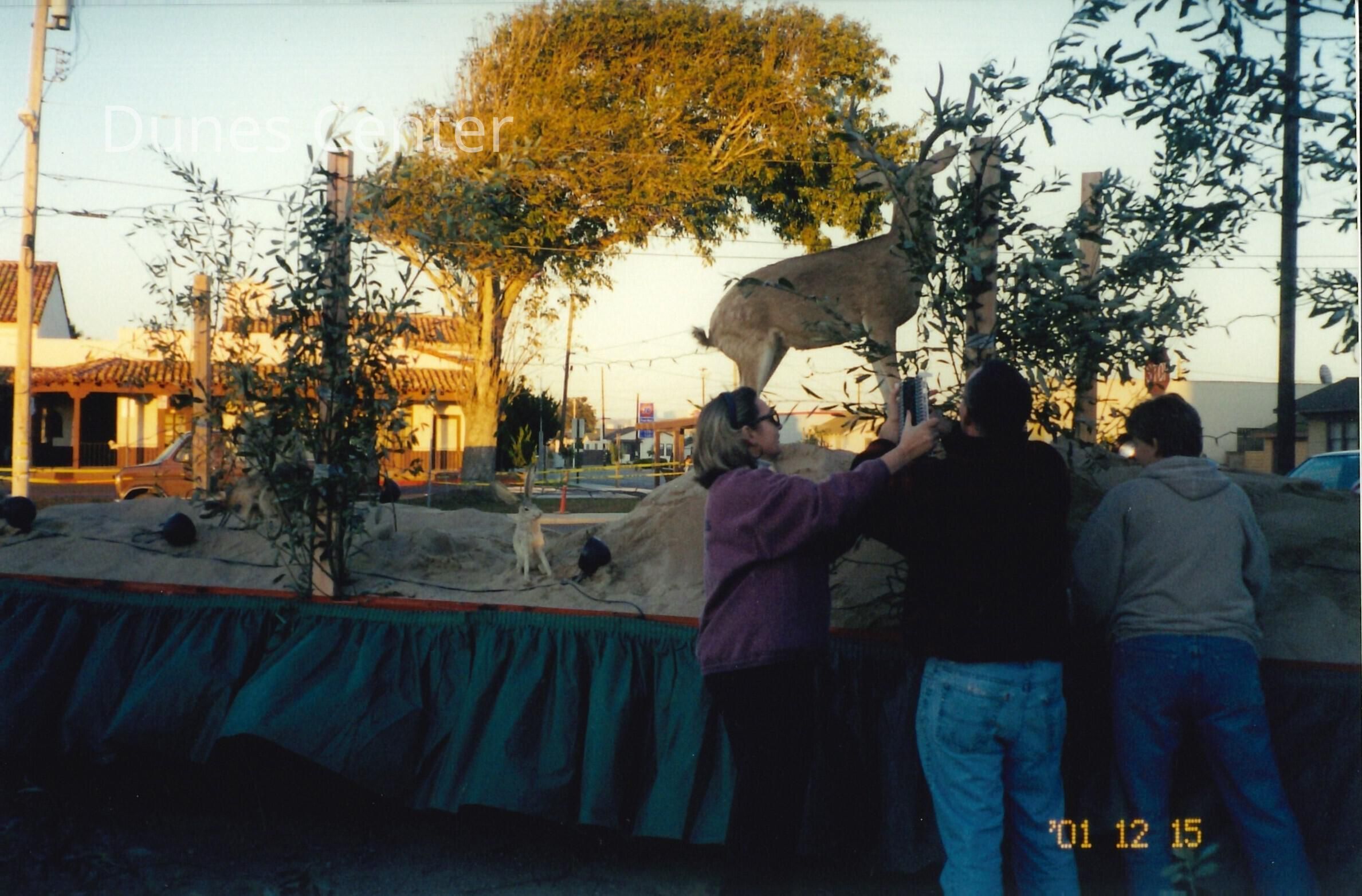 Guadalupe Christmas Parade Float, Gillian Andrews, Chris Barr, and Unknown Person. 4" x 6" color photograph. Photograph dated December 2001