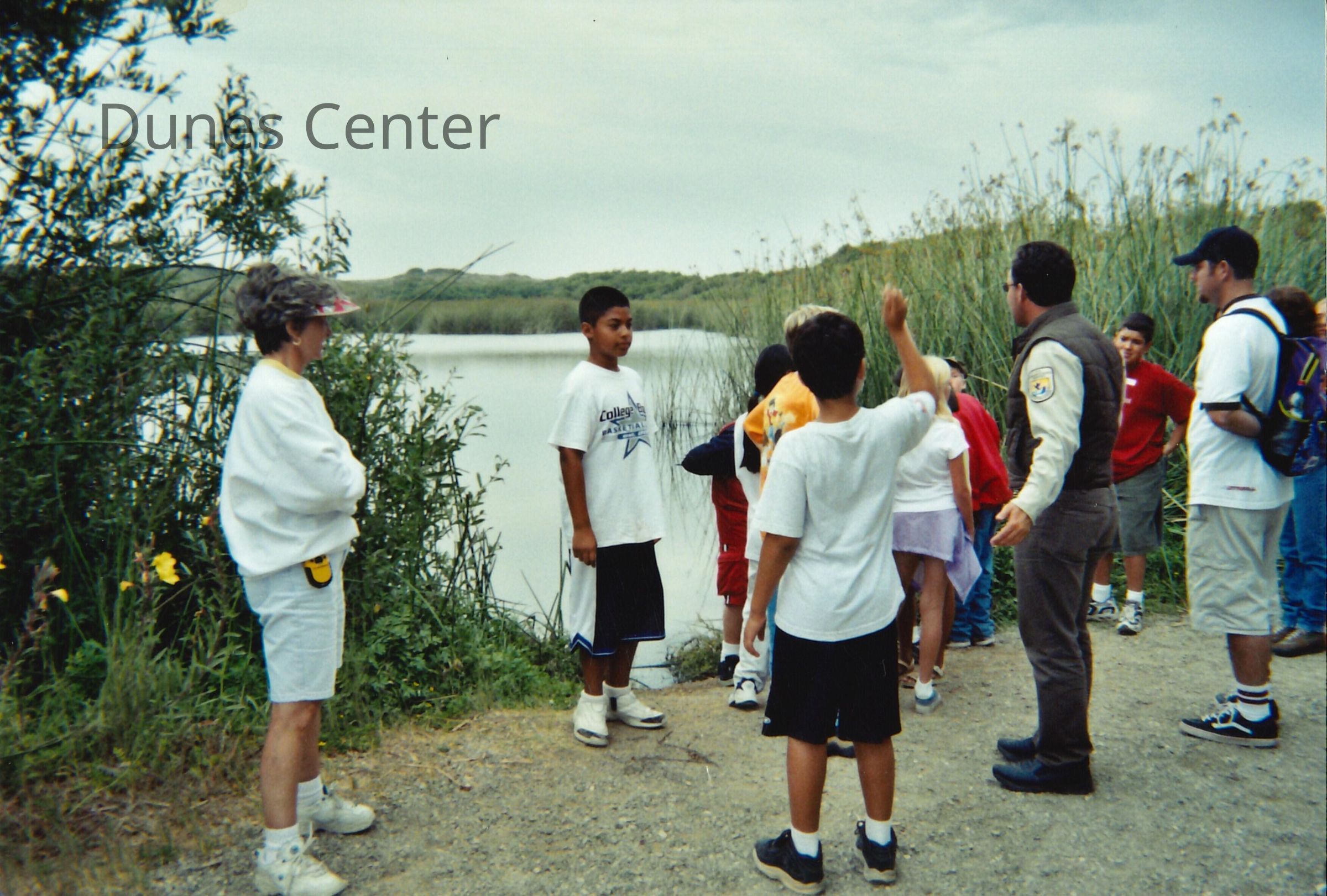 Chris Barr US Fish and Wildlife Service with an unspecified Elementary School Field Trip 2001; 4" x 6" color photograph
