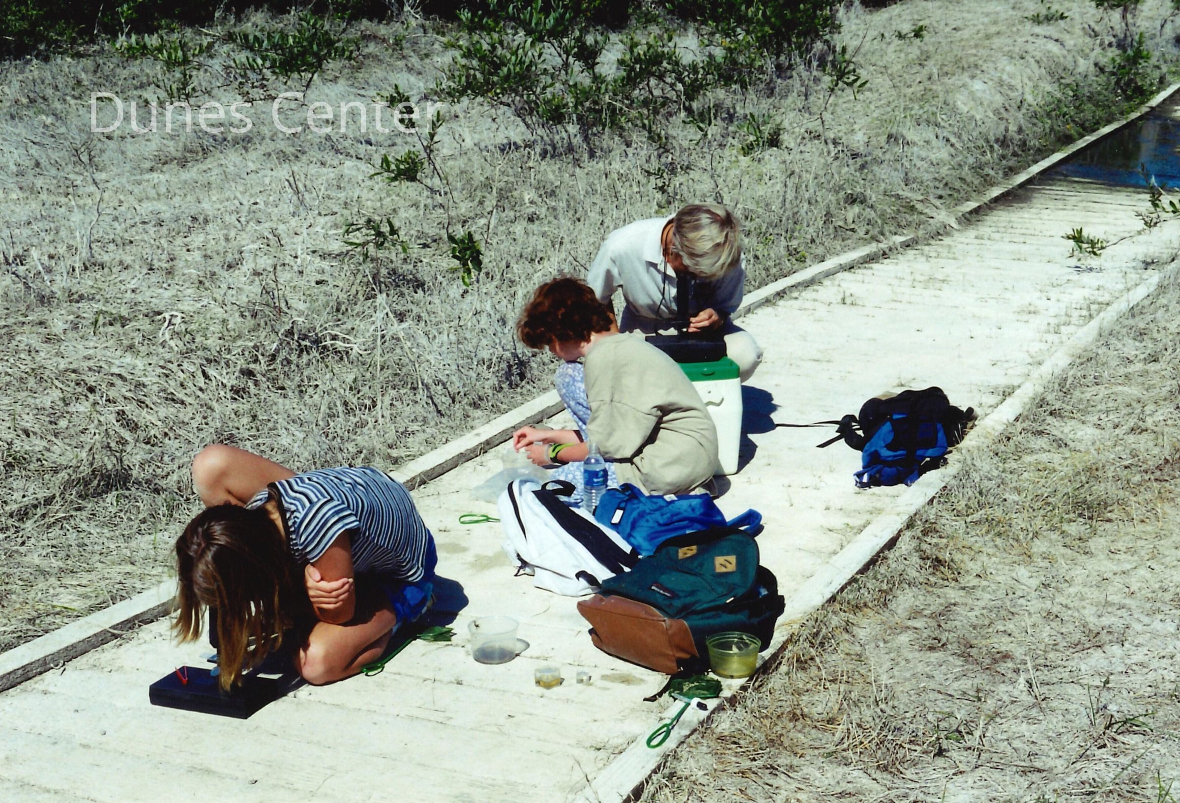 Undated 4" x 6" color photograph of Theresa Hoffman and two children on the Oso Flaco Boardwalk