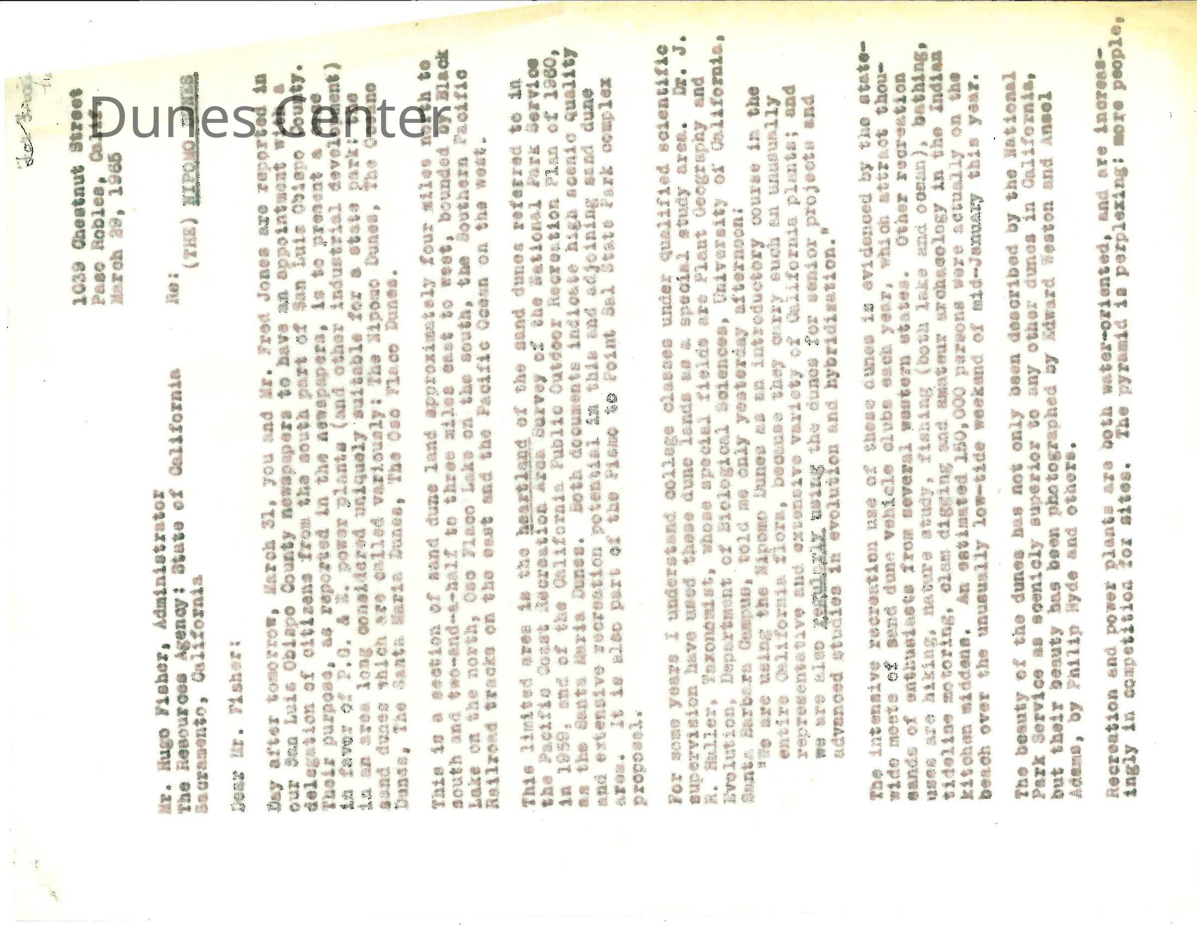 March 28, 1965. Letter to Hugo Fisher, Administrator of the Resources Agency of the State of California from Kathleen Goddard Jones (formerly Mrs. Duncan P. Jackson)