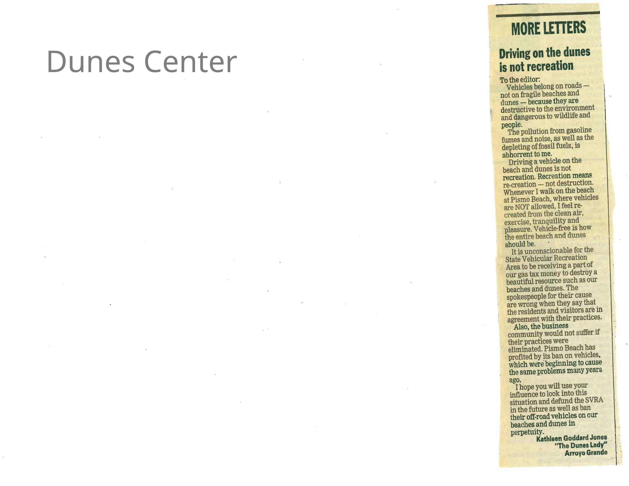 "Driving on the Dunes is Not Recreation" - a letter to the editor by Kathleen Goddard-Jones