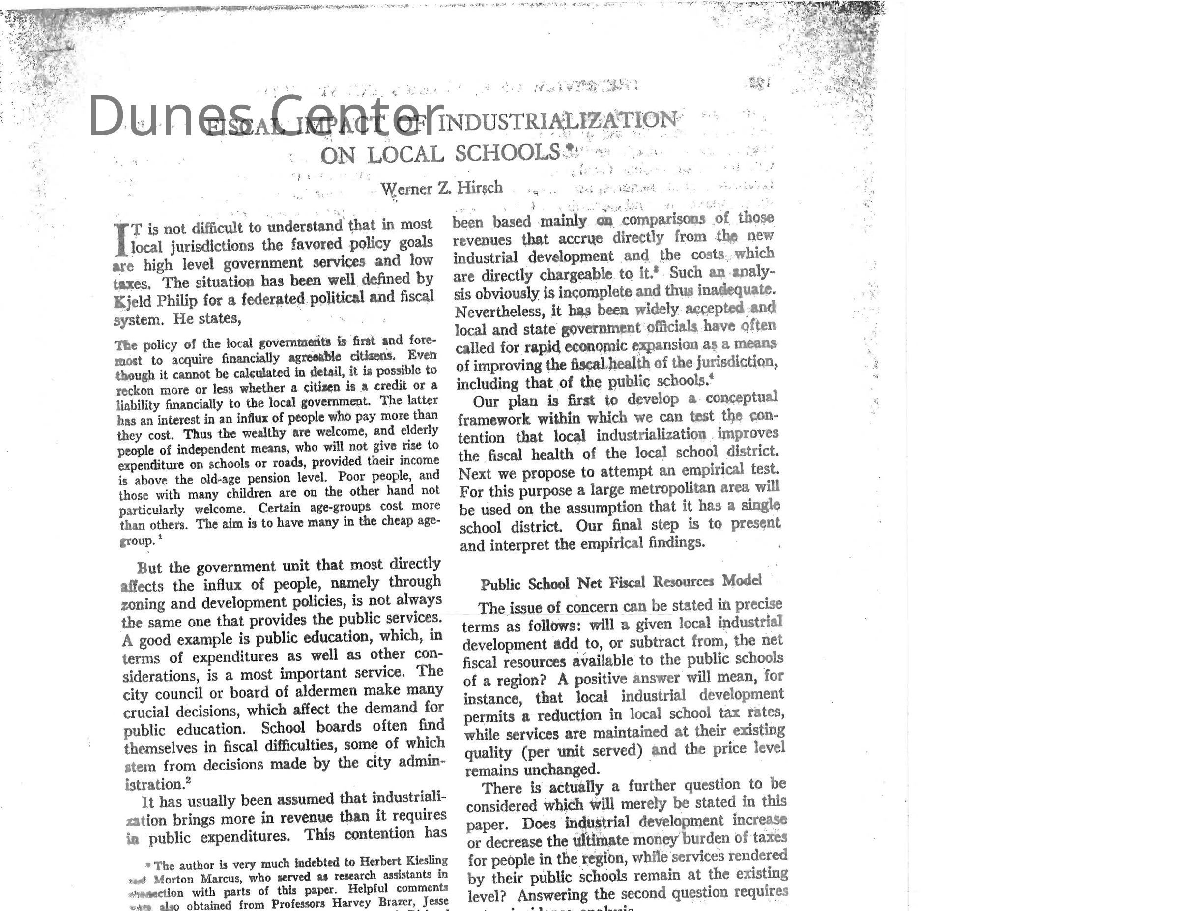 "Fiscal Impact of Industrialization on Local Schools" by Werner Z. Hirsch, sent to Kathleen Goddard Jones from Robin Ives.Collection