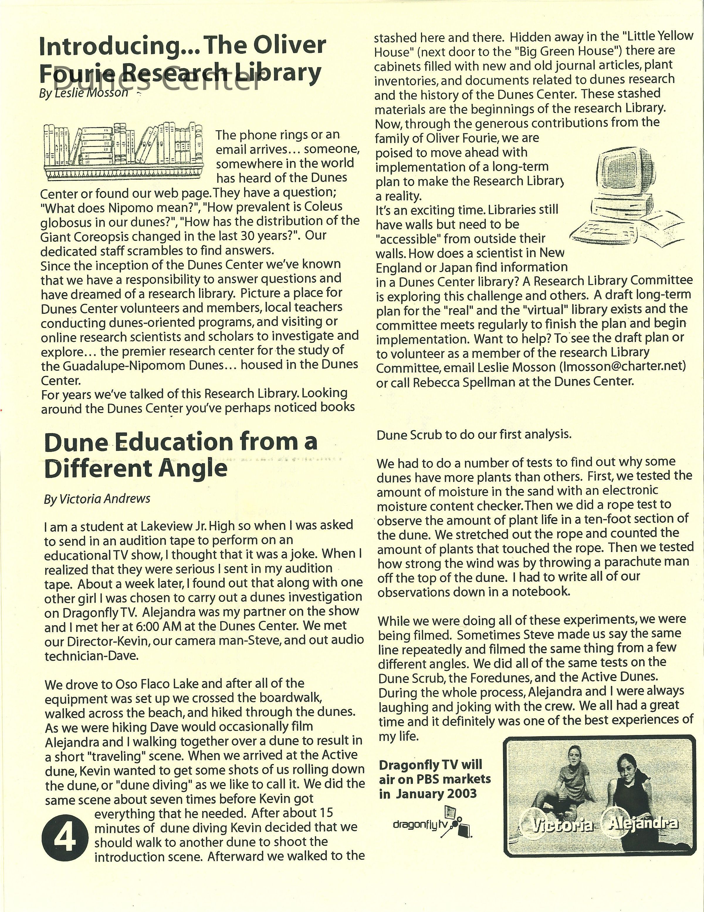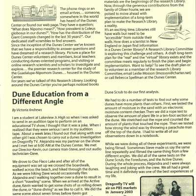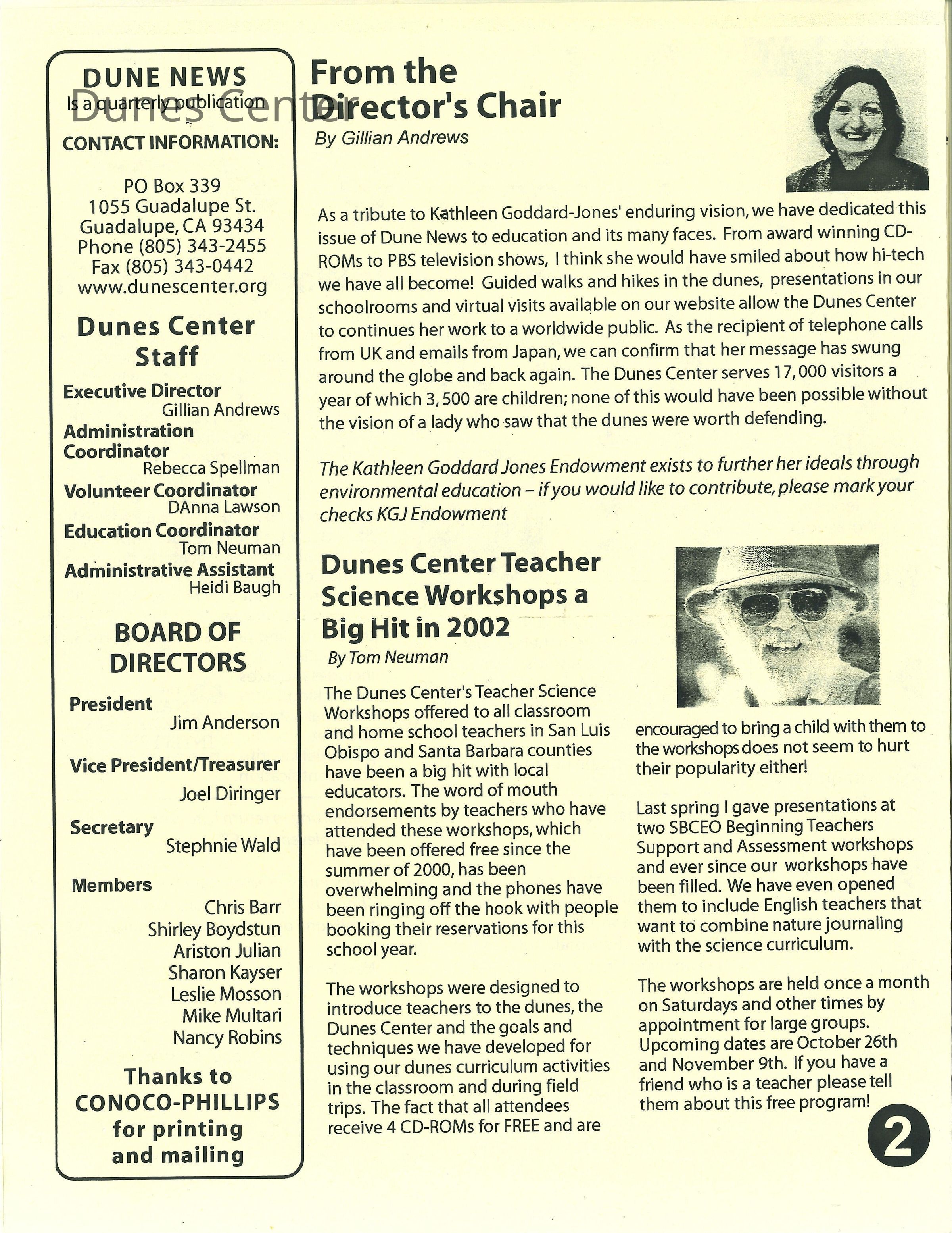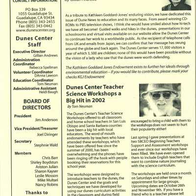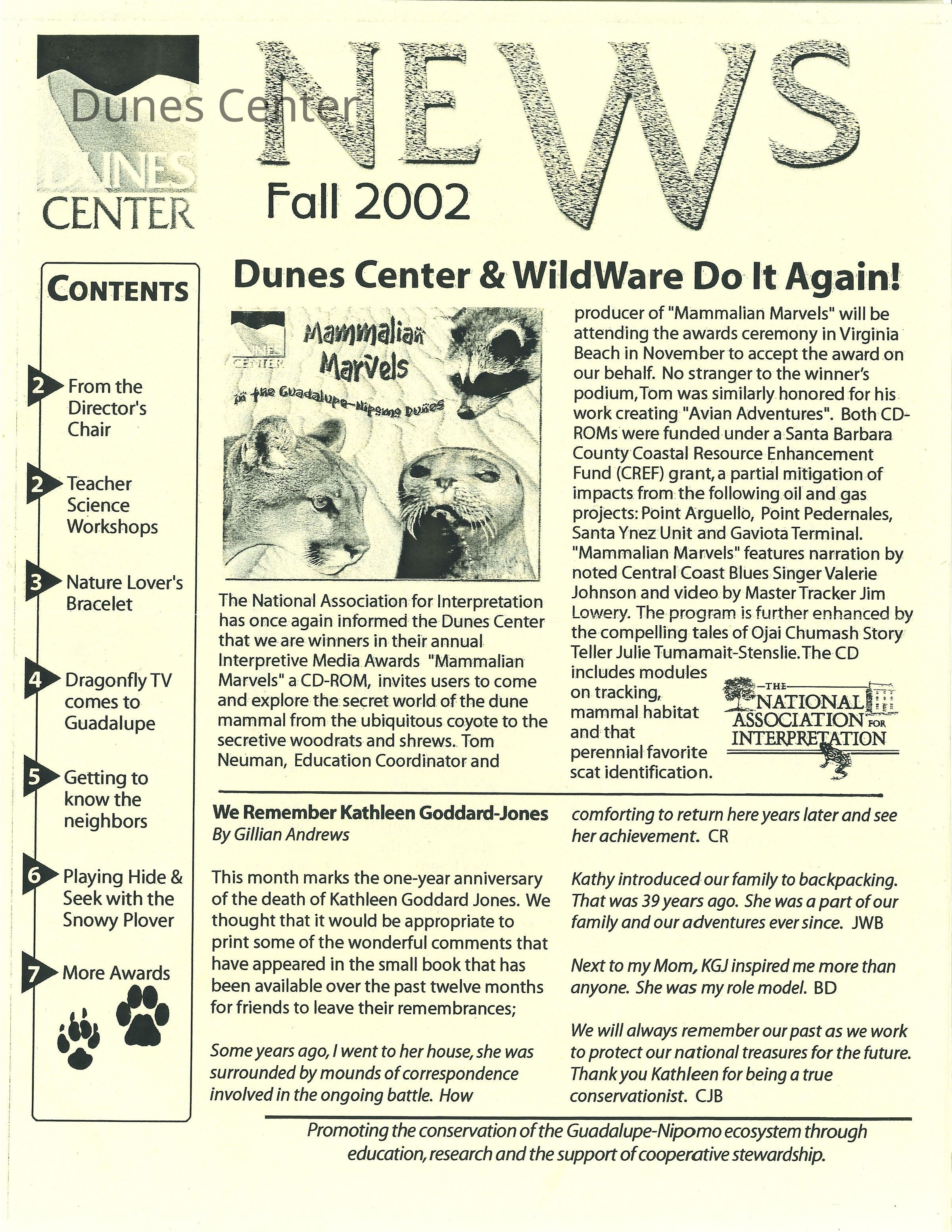 Dunes Center News - Fall 2002 Edition - Mentions Kathleen Goddard-JonesEntry/Object ID