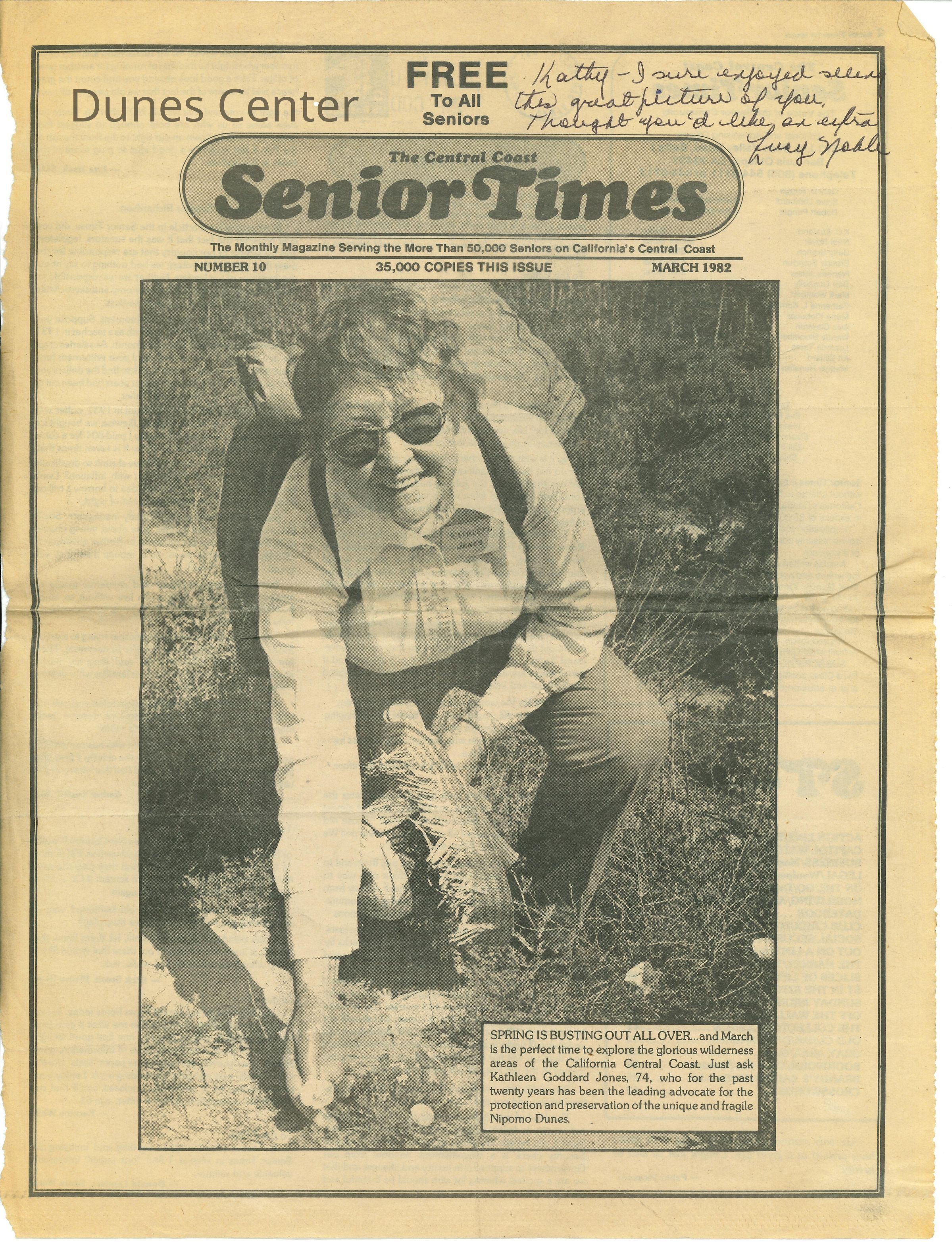 March 1982, The Central Coast Senior Times, front page features a photo of Kathleen Goddard-Jones .