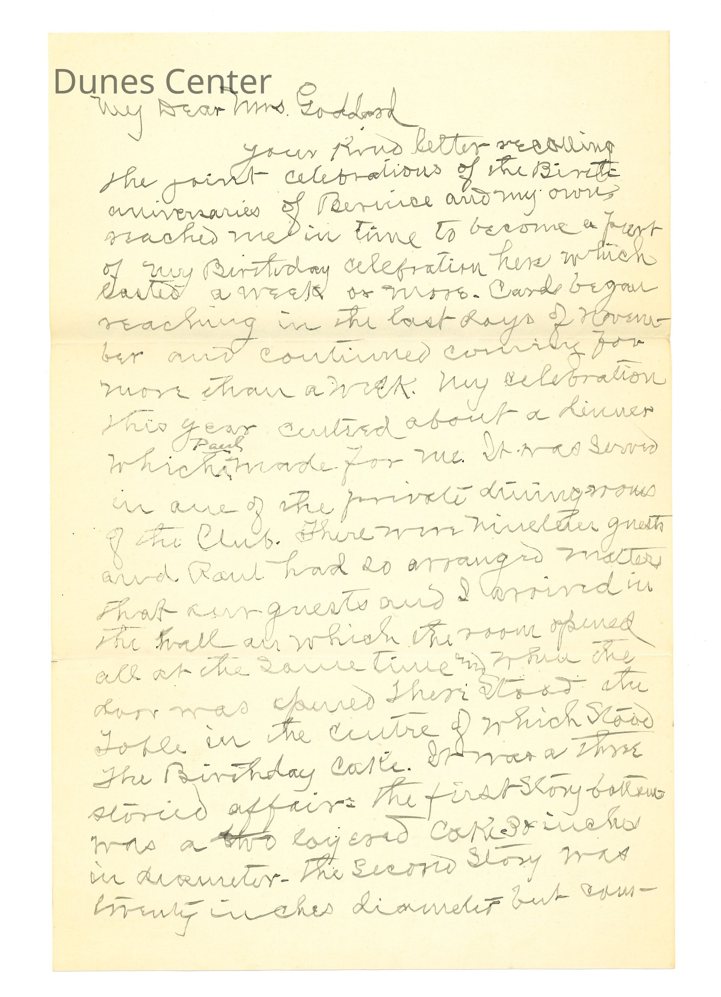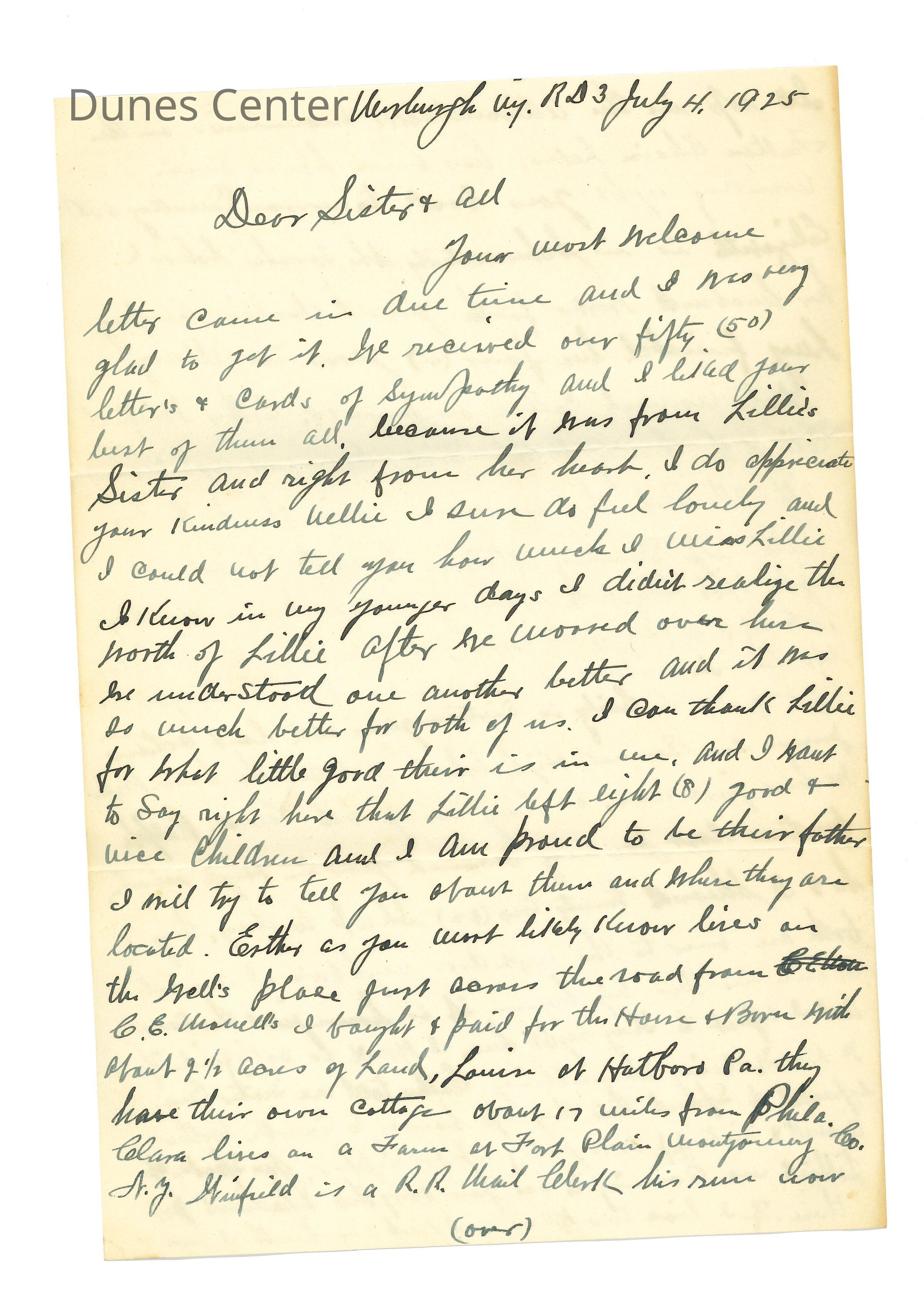 Letter to Mrs.Nellie Goddard from he - July 4 - 1925