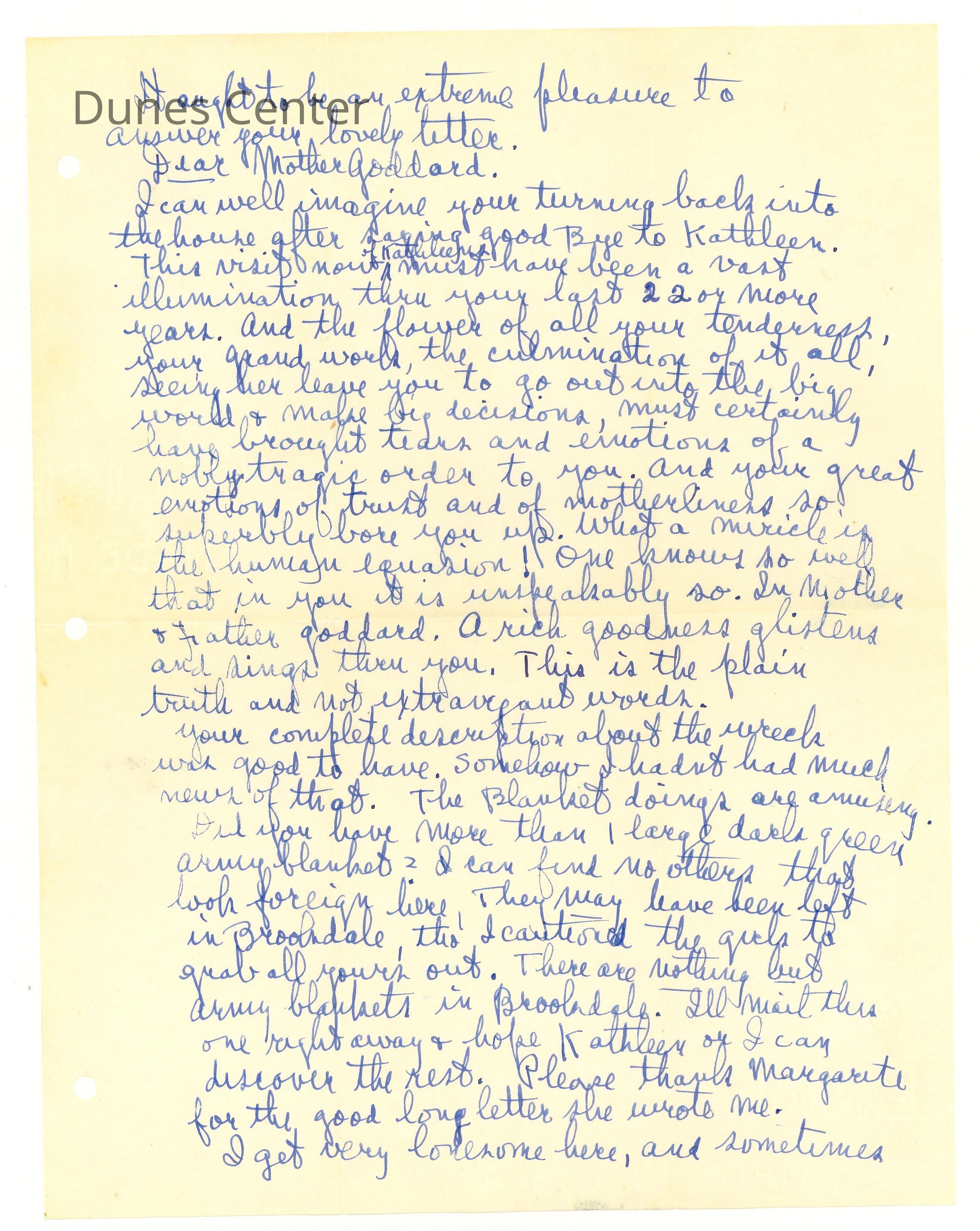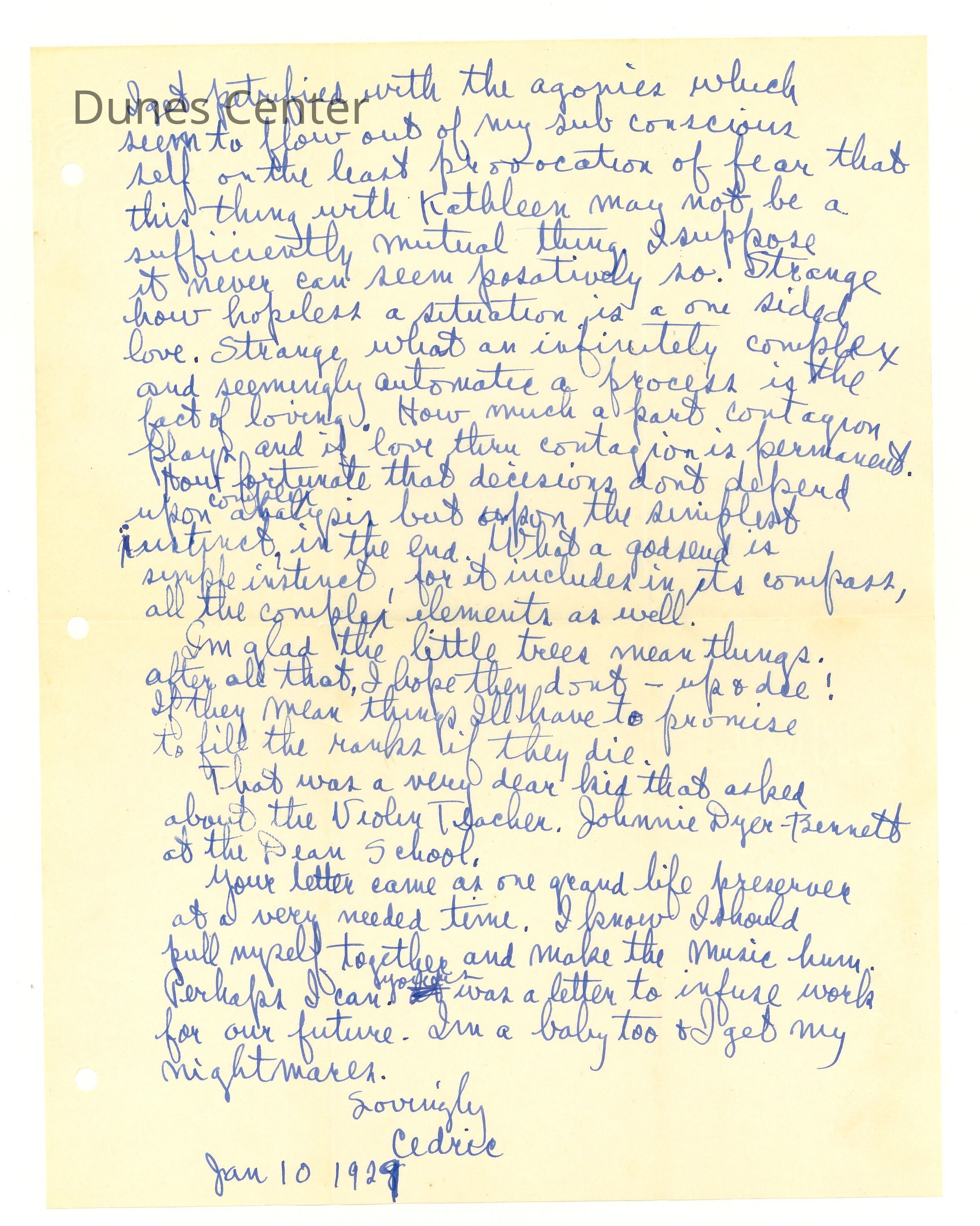 January 10, 1929, New York City, Cedric Wright to Mrs. Goddard, letter reflecting on Kathleen Goddard leaving home, envelope includedEntry/Object ID