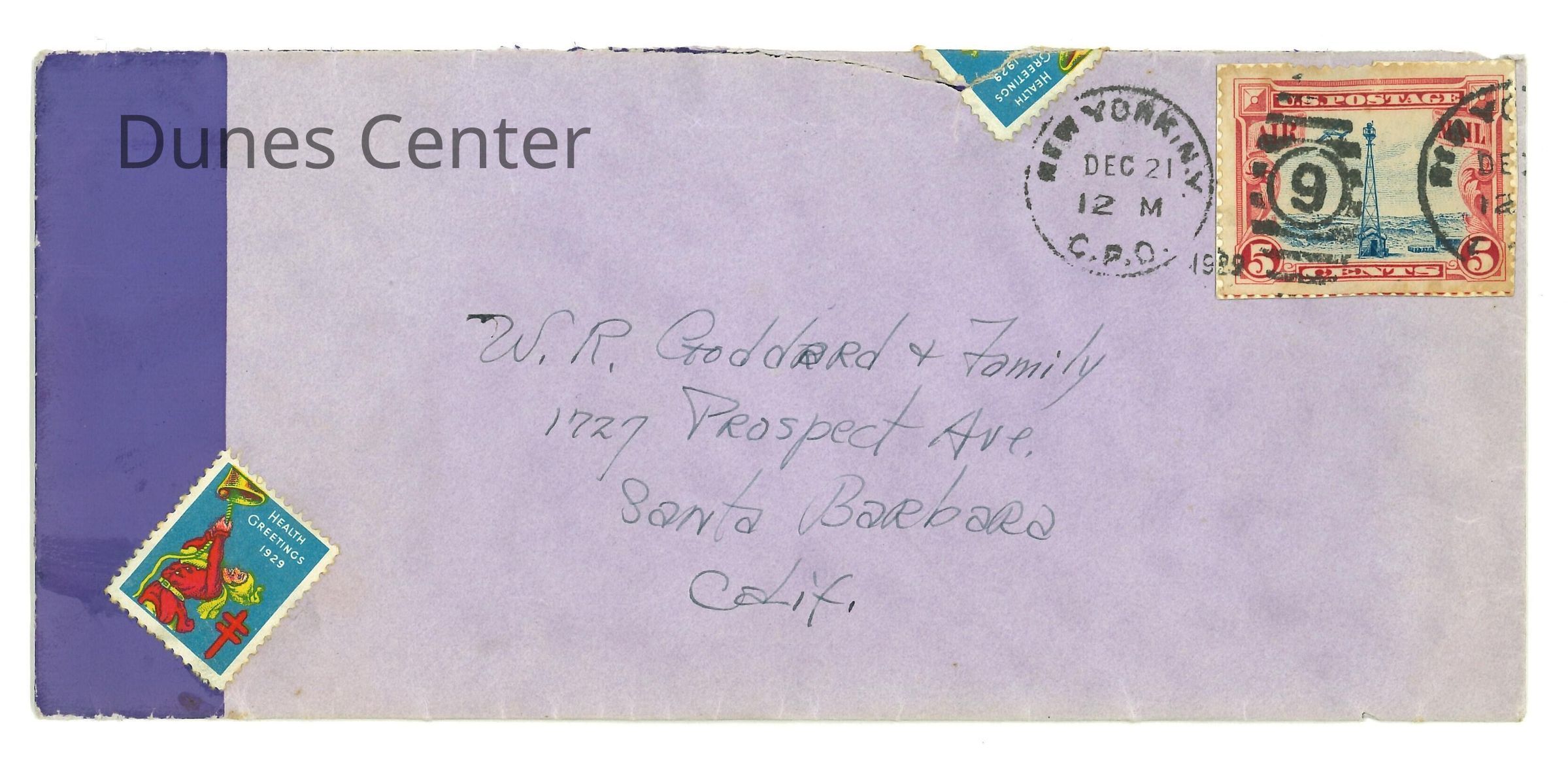 December 21, 1929, New York City, Letter from Kathleen Ali to W.R. Goddard & Family, letter confirming arrival of Christmas packages, envelope includedDimensions