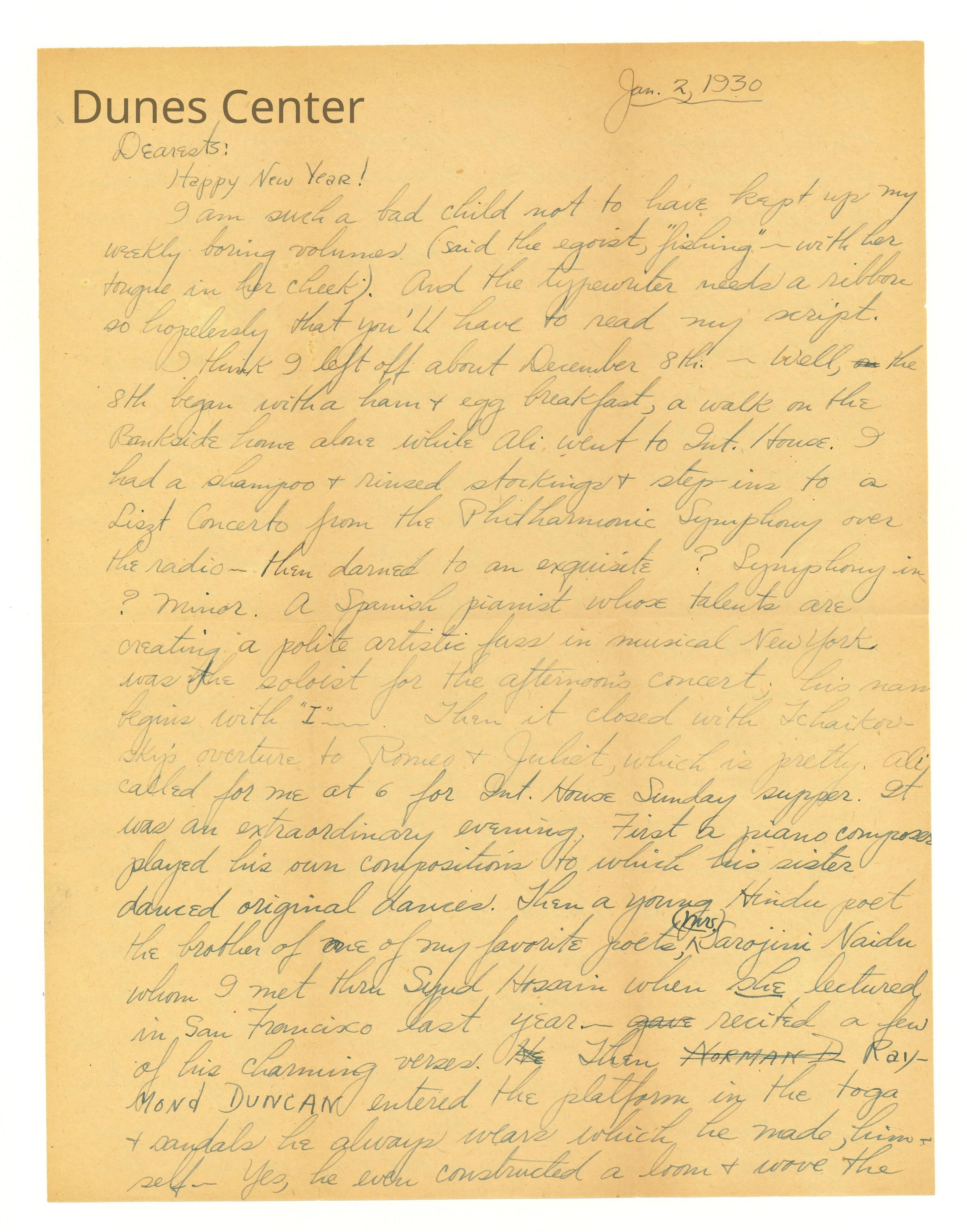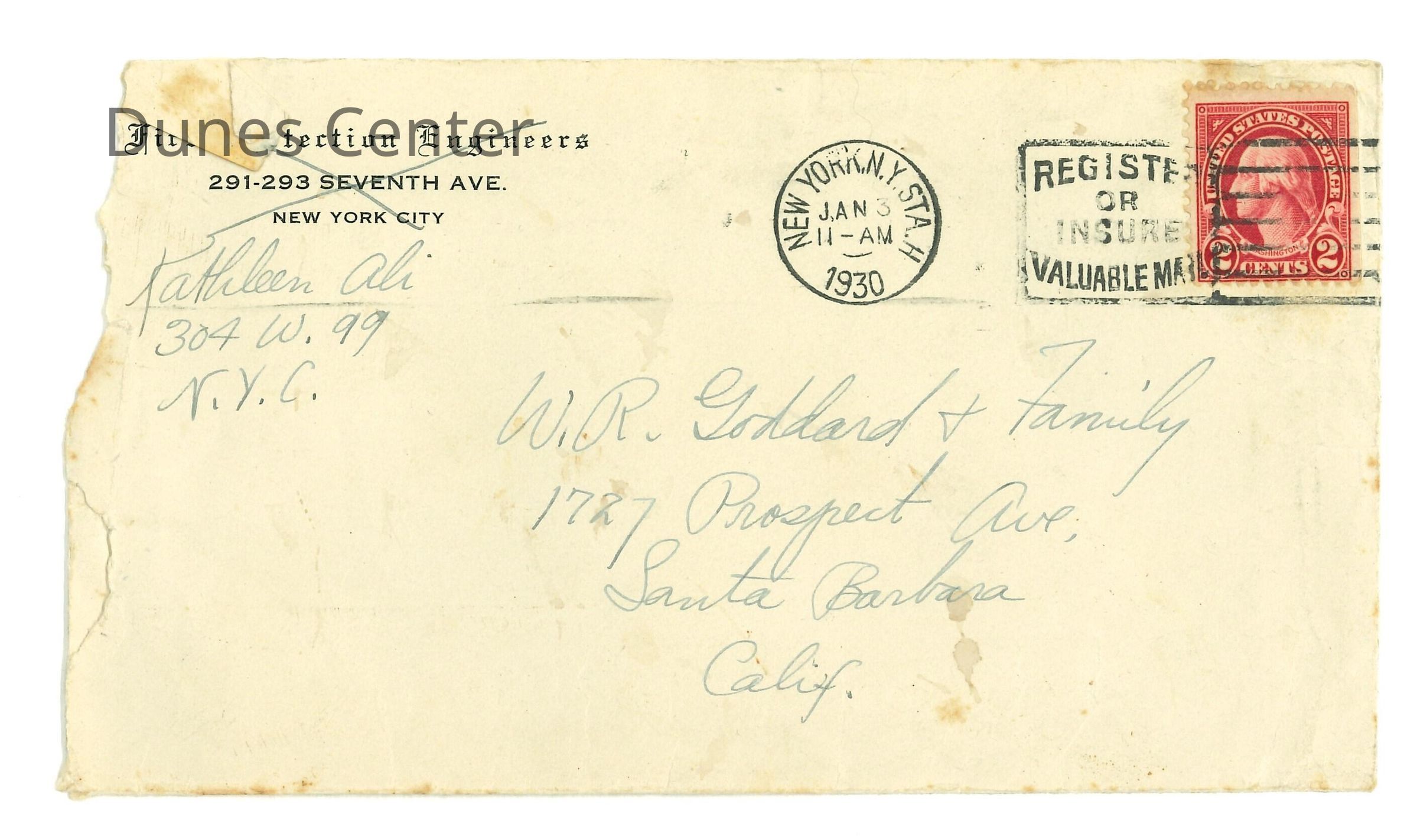 January 2, 1930, New York City, Letter from Kathleen Ali to W.R. Goddard & Family, Happy New Year Letter desribing her December, envelope includedEntry/Object ID