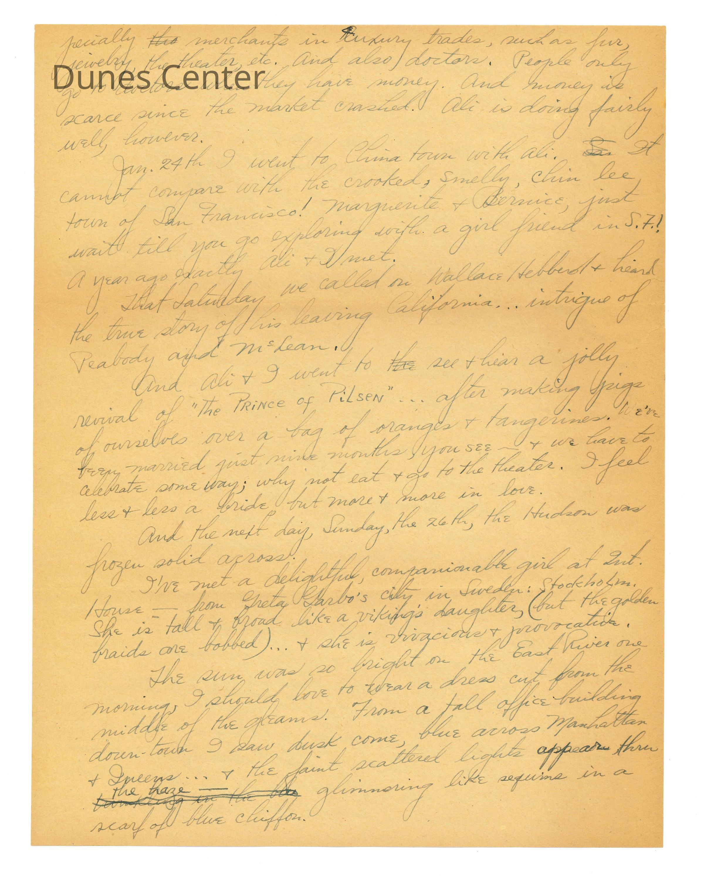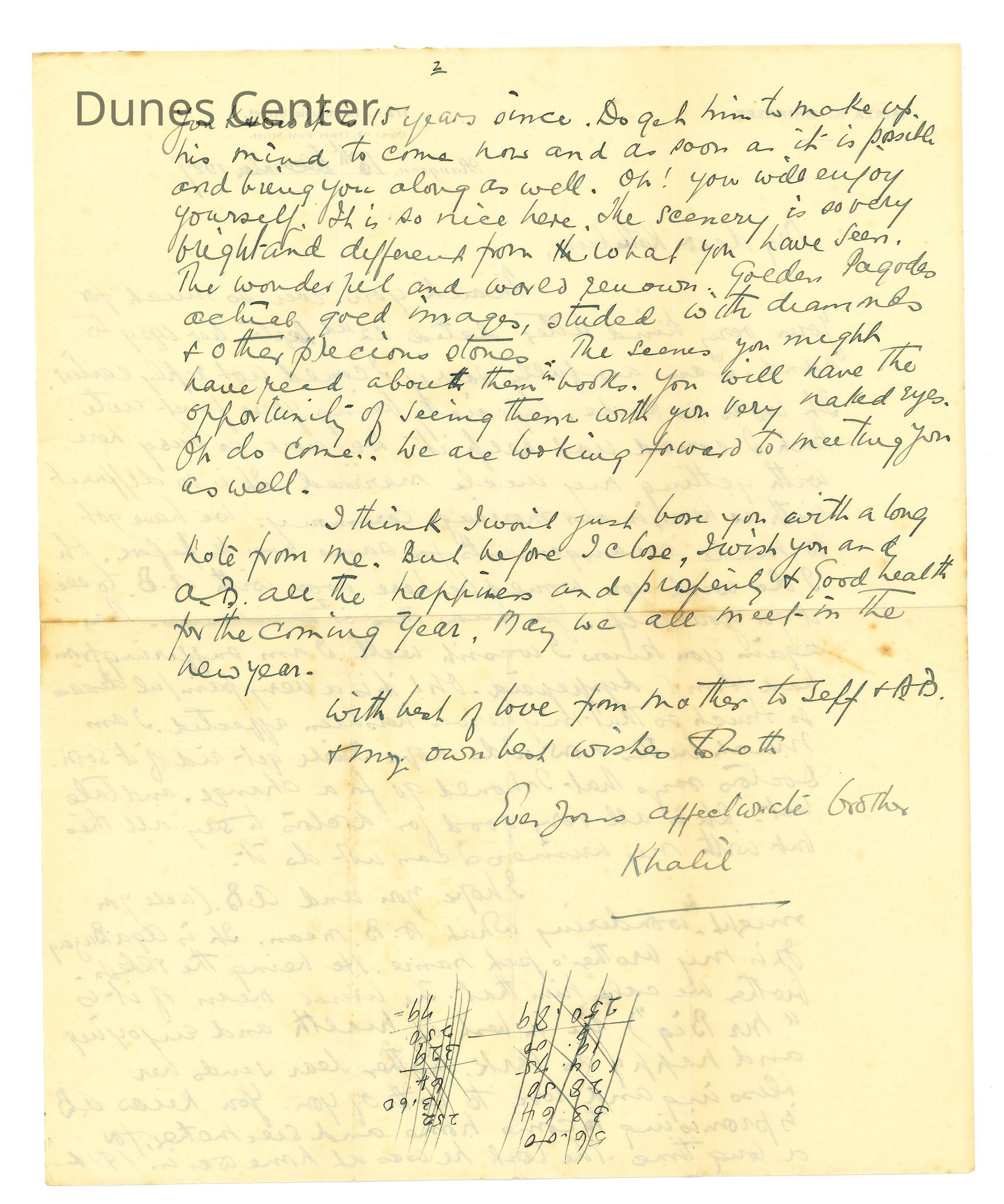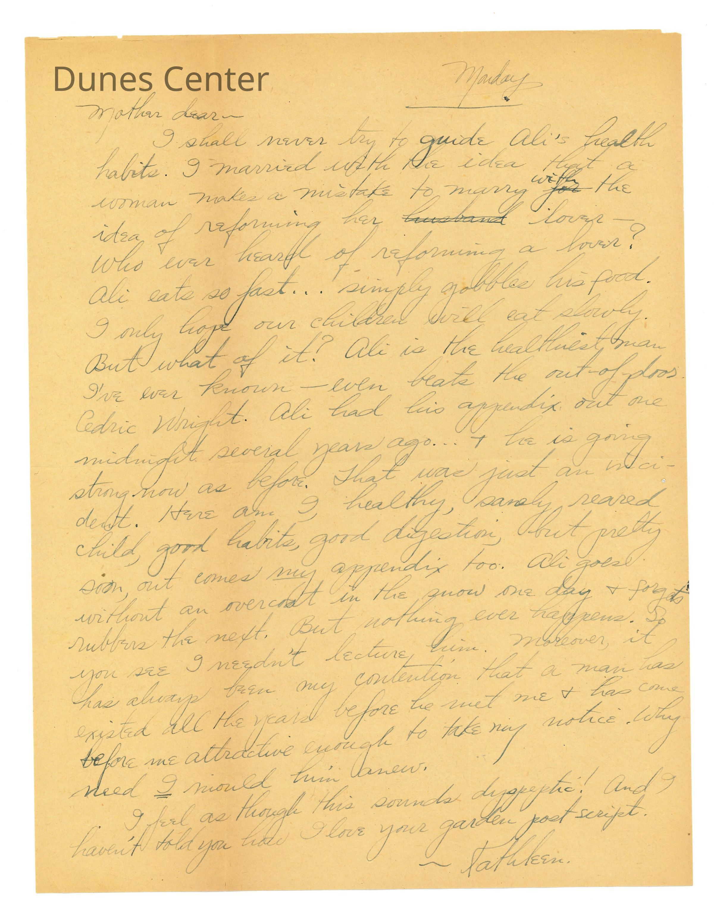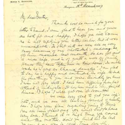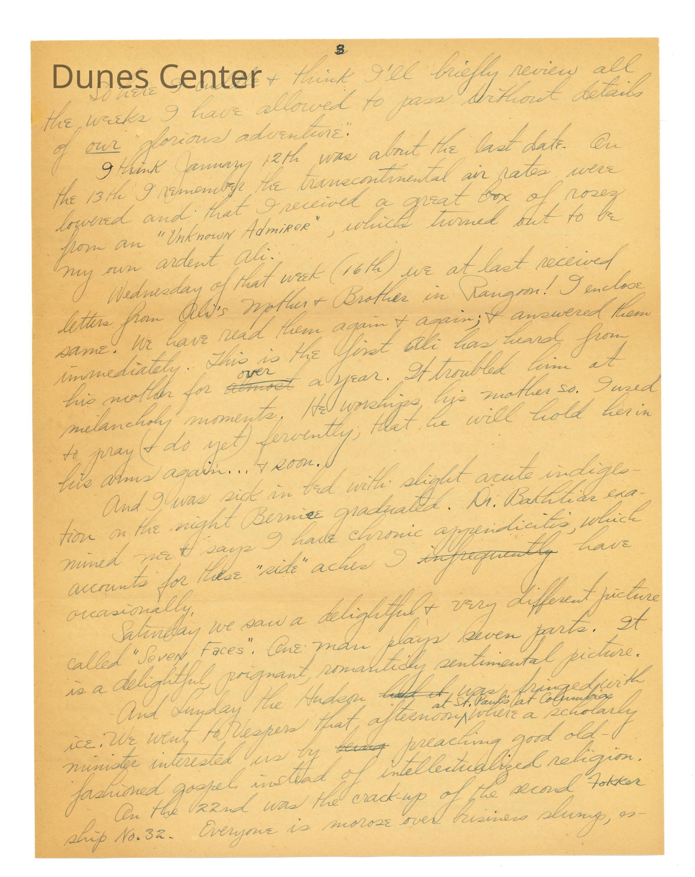 February 16, 1930, New York City, Letter from Kathleen Ali to W.R. Goddard & Family, winter, visiting the pictures, appendix operation, letters from Persia; December 15, 1929, Letters from Khahil (Ali's brother) to Kathleen and Ali, from Rangoon, BurmaEntry/Object ID