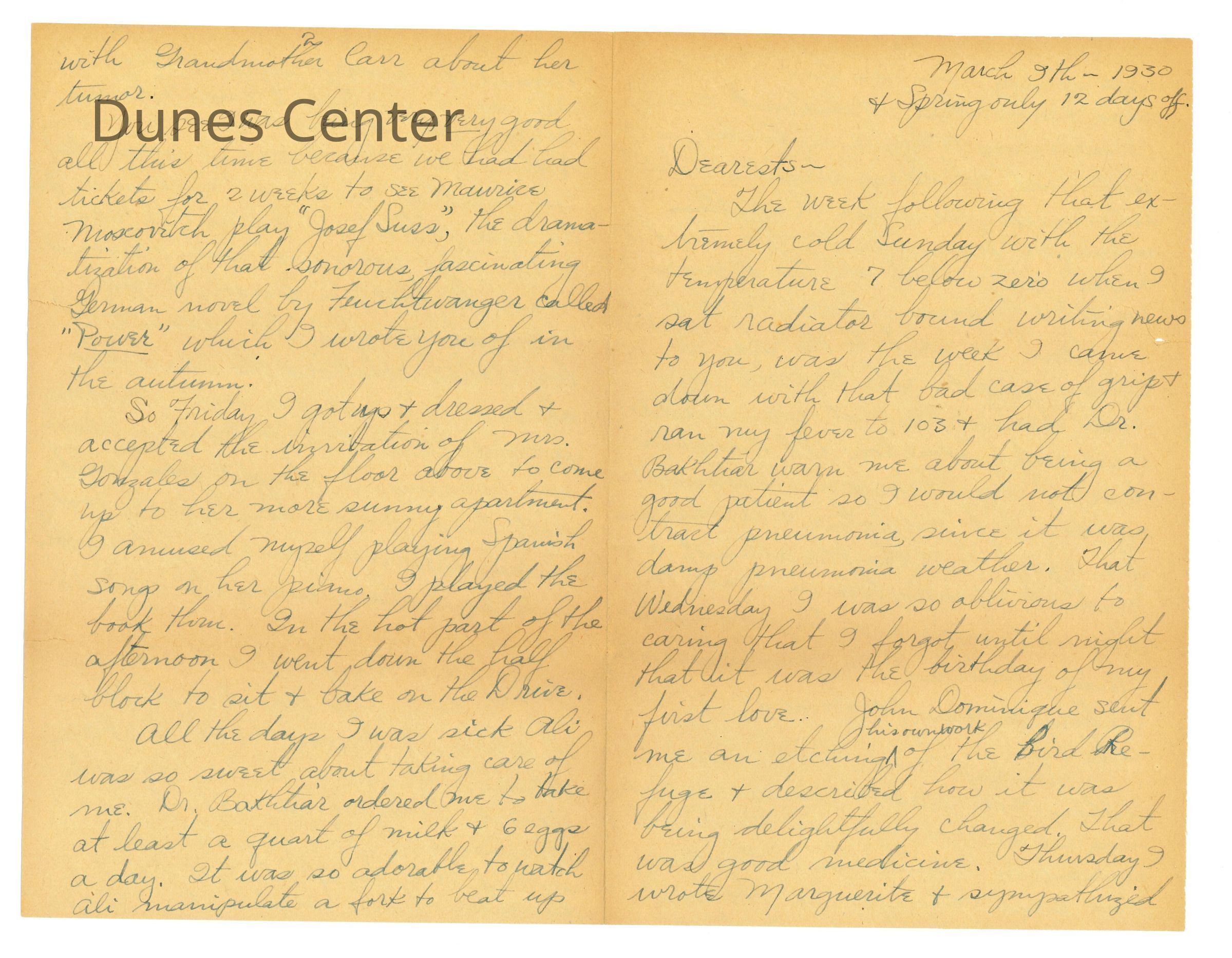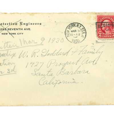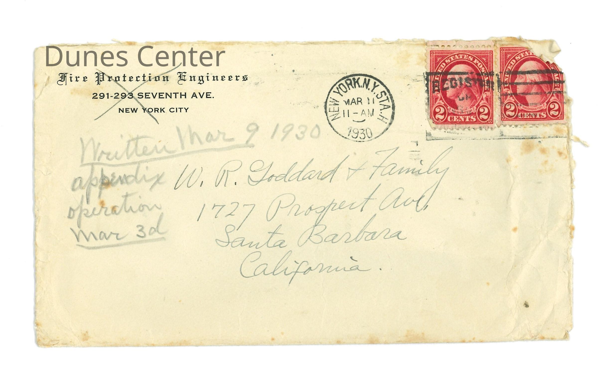 March 9, 1930, New York City, Letter from Kathleen Ali to W.R. Goddard & Family, appendix removal operation, envelope includedEntry/Object ID
