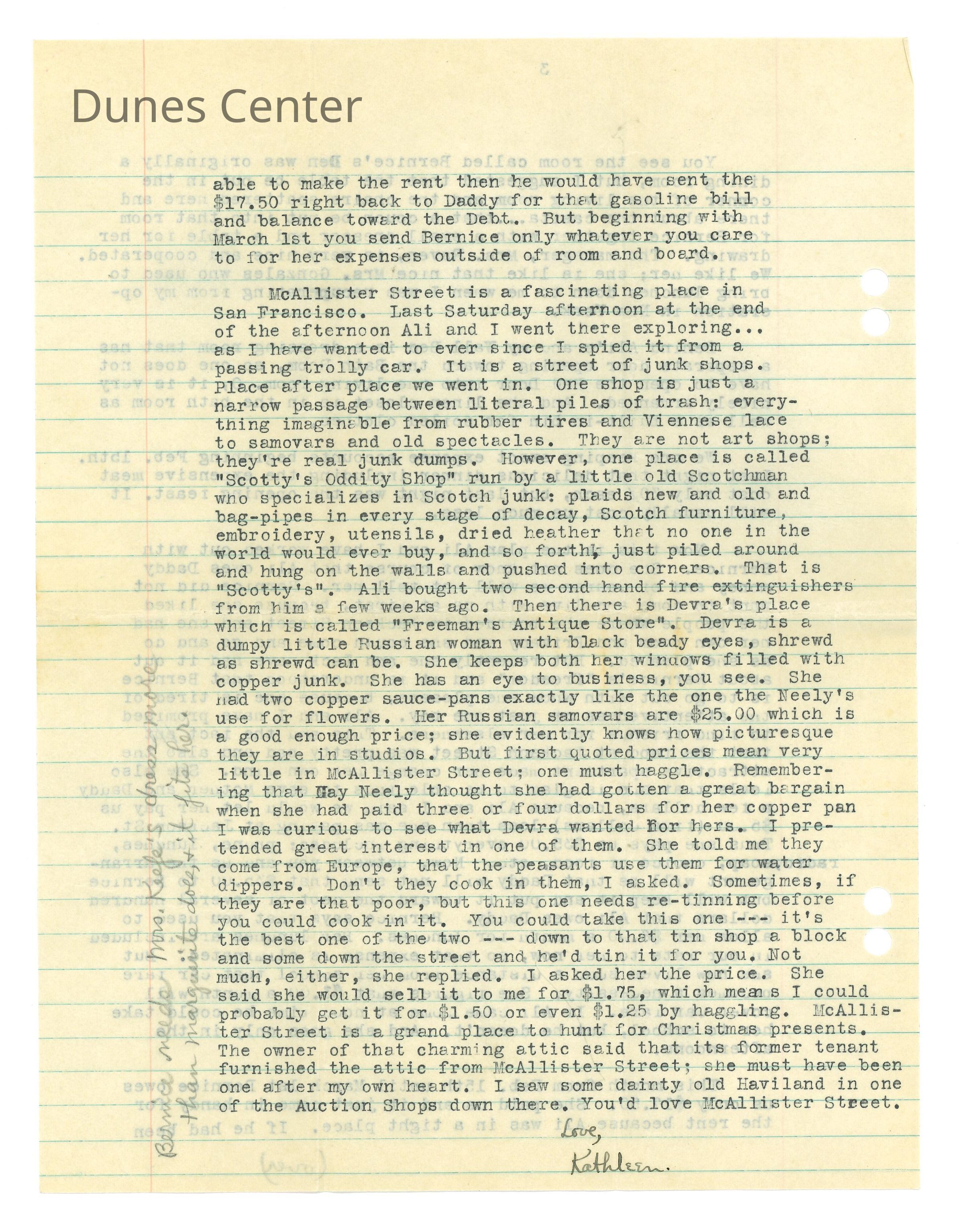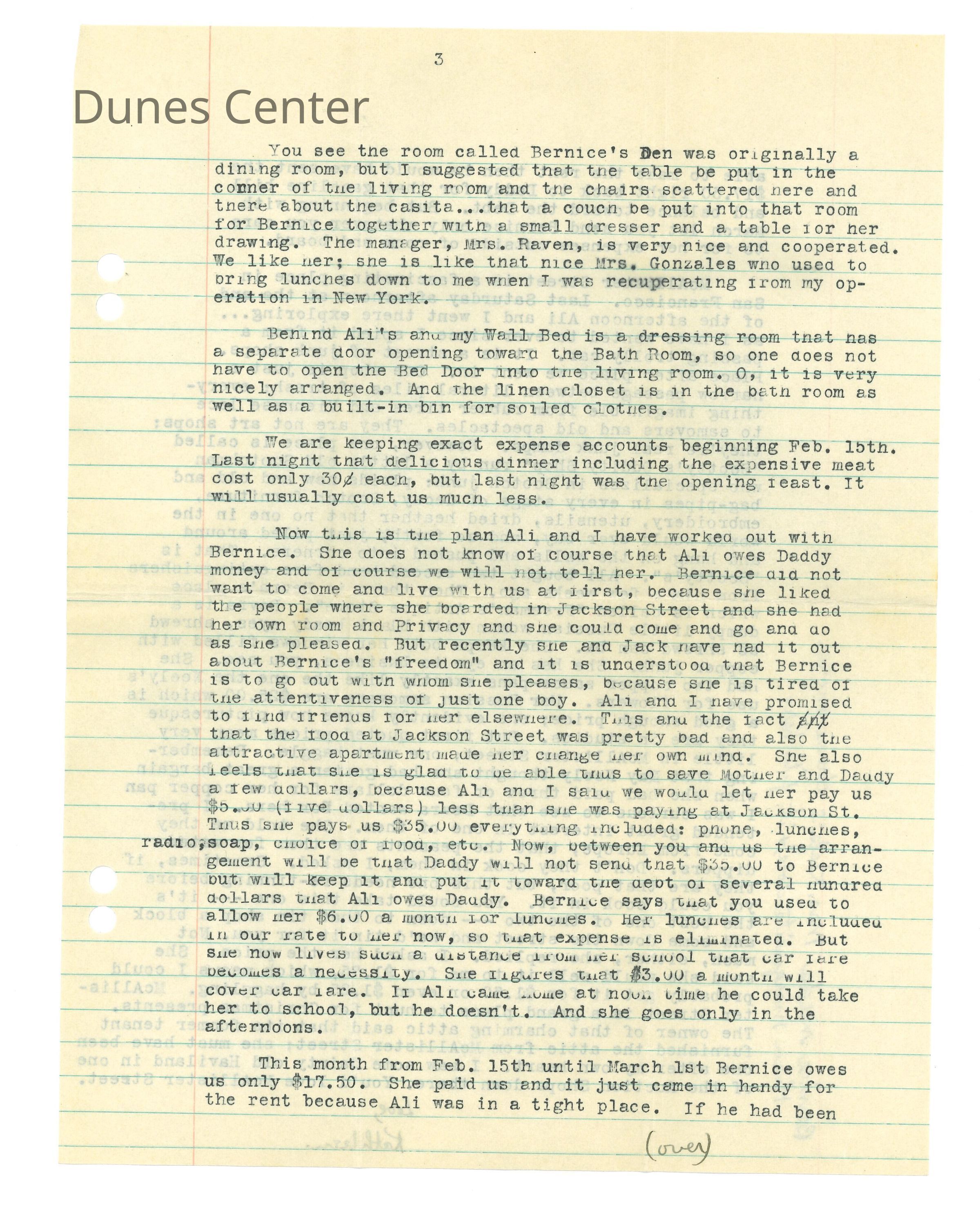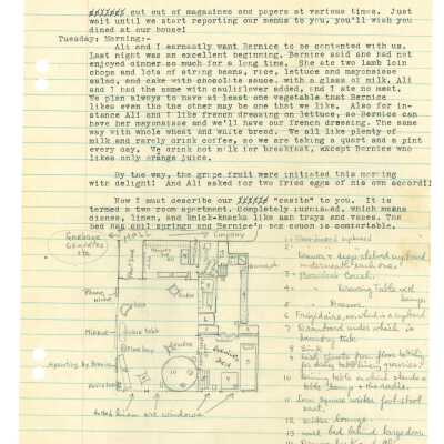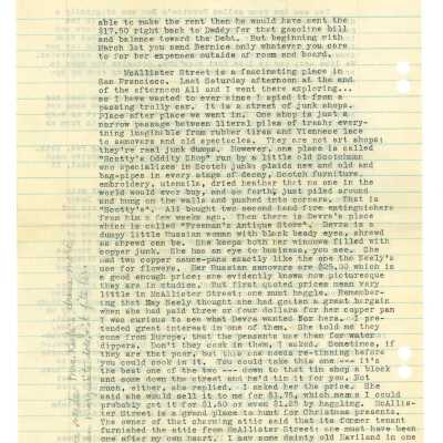 February 15, 1932, San Francisco, Typed letter from Kathleen Ali to W.R. Goddard & Family, new apartment with sister and money issues, drawing of apartment floorplan, envelope includedDimensions