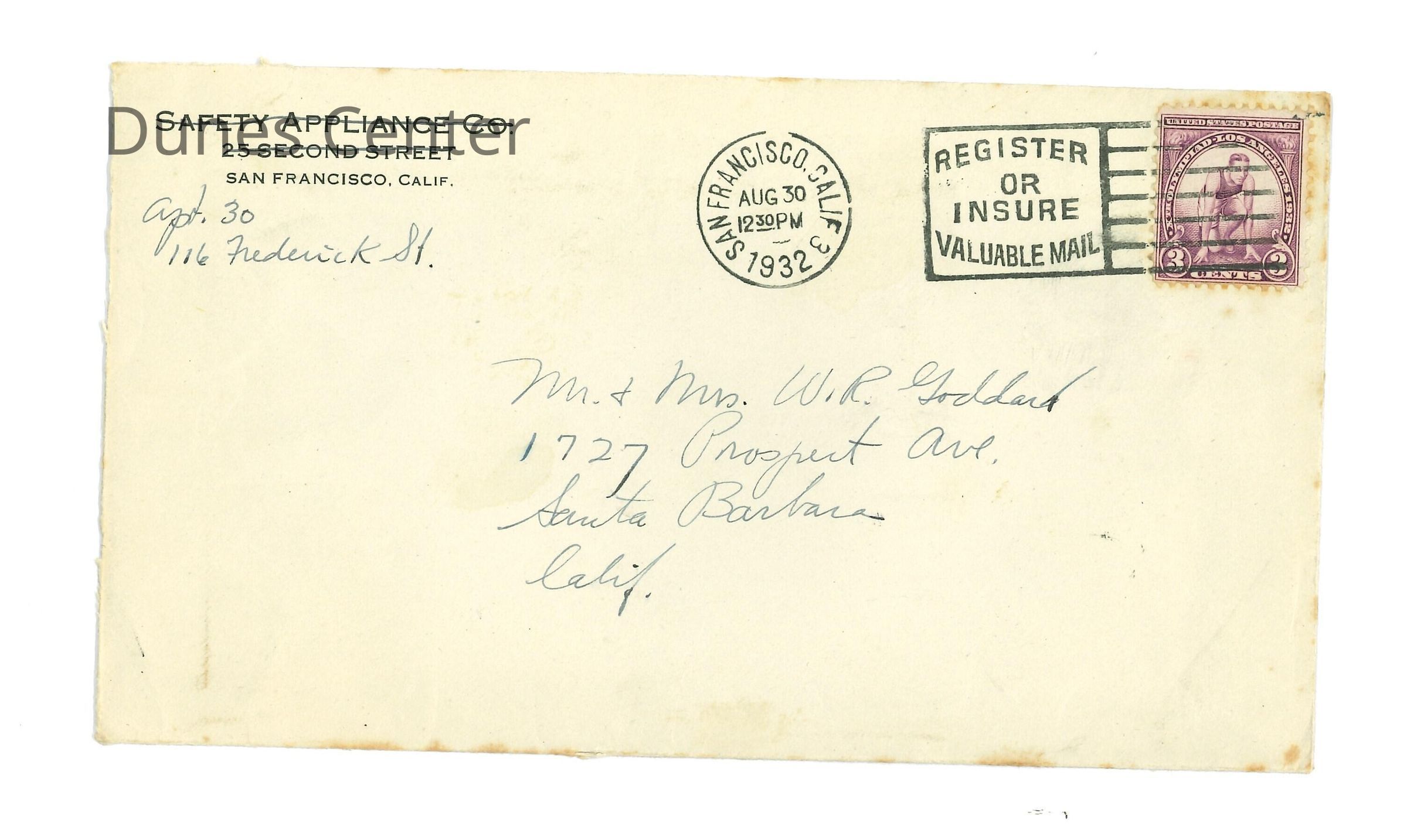 August 30, 1932, San Francisco, Letter from Kathleen Ali to Mr. & Mrs. W.R. Goddard, moving out of apartment, laundrey cost, looking for a new room for Kathleen's sister, envelope includedDimensions