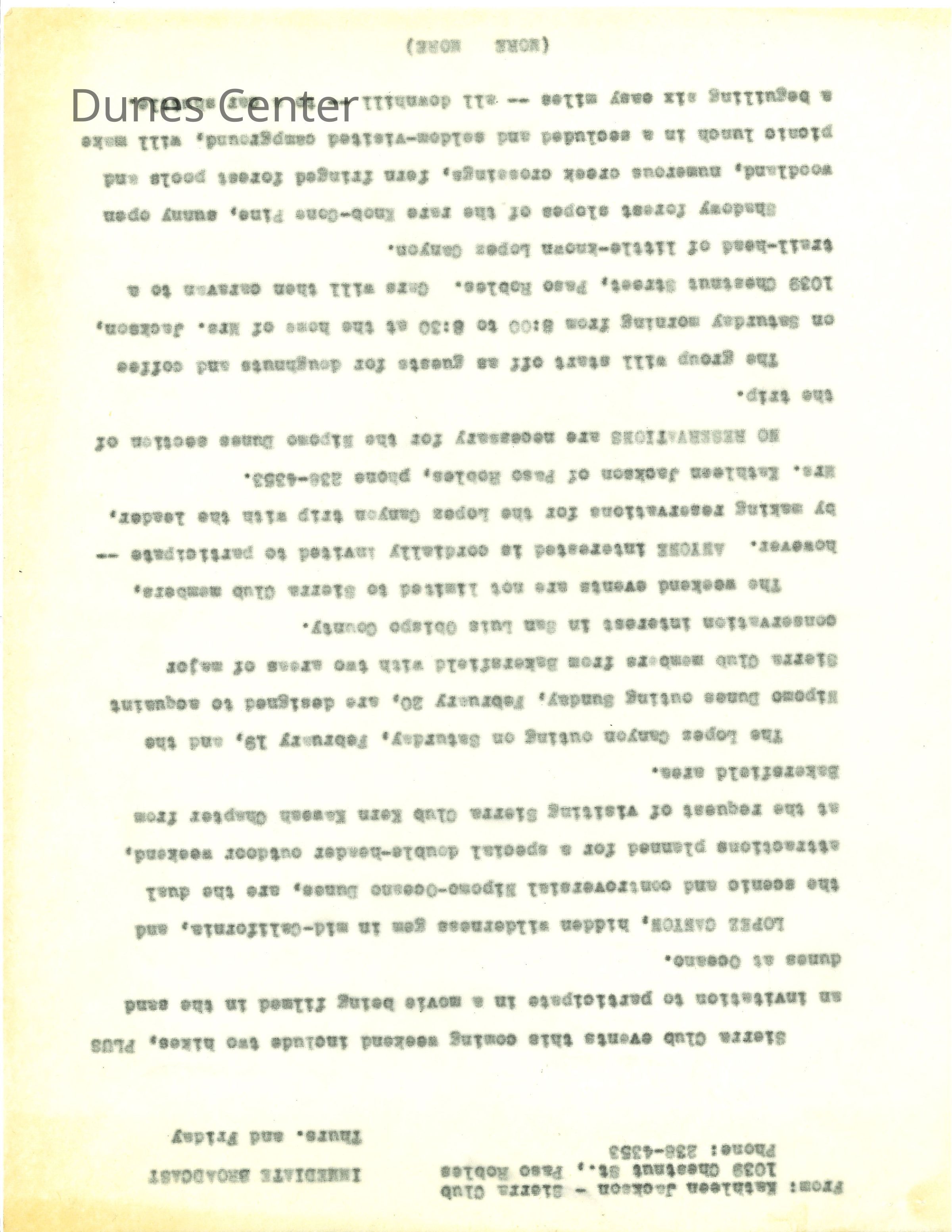 Press release from Kathleen Goddard-Jones about planned Sierra Club hikes