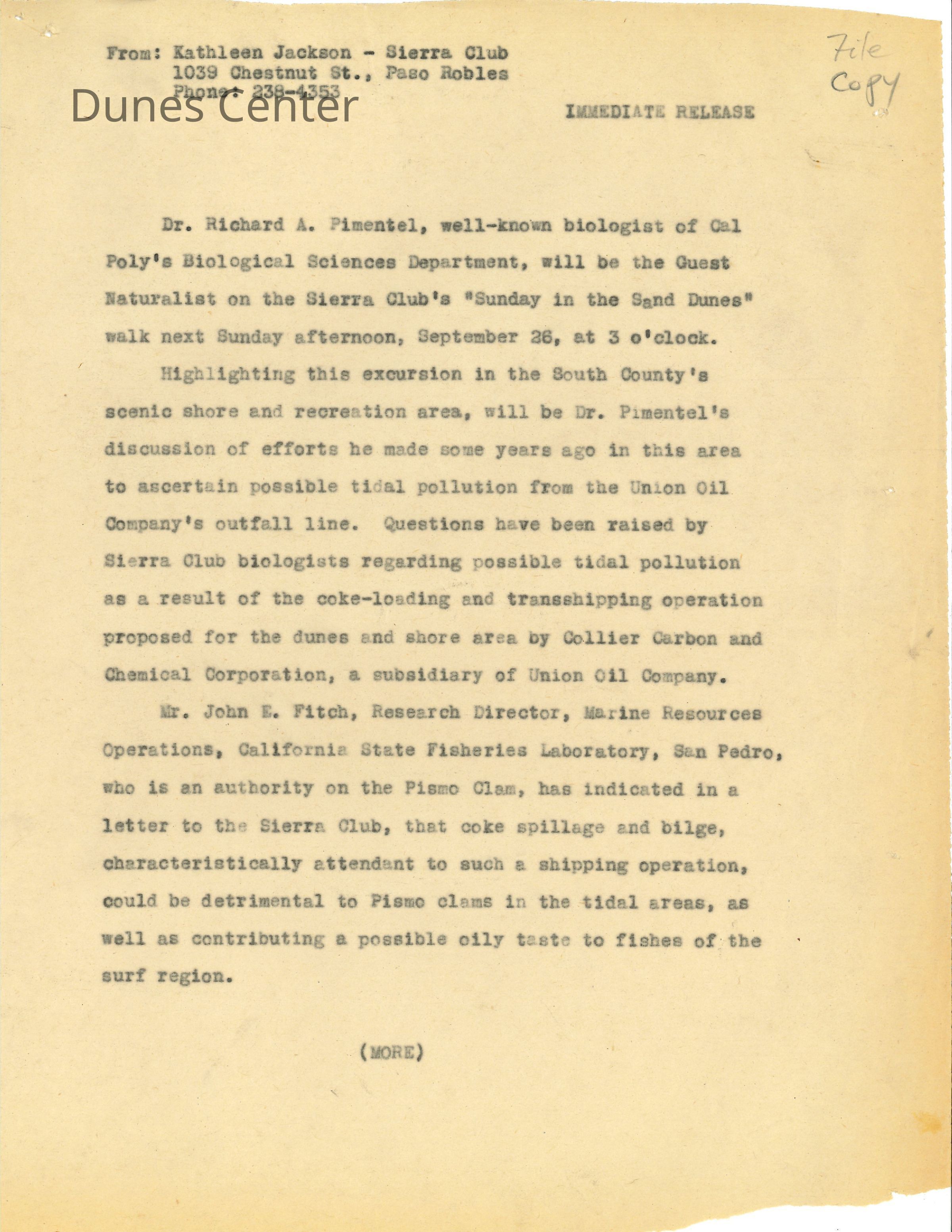 Press release from Kathleen Goddard-Jones about upcoming outings in the dunes.