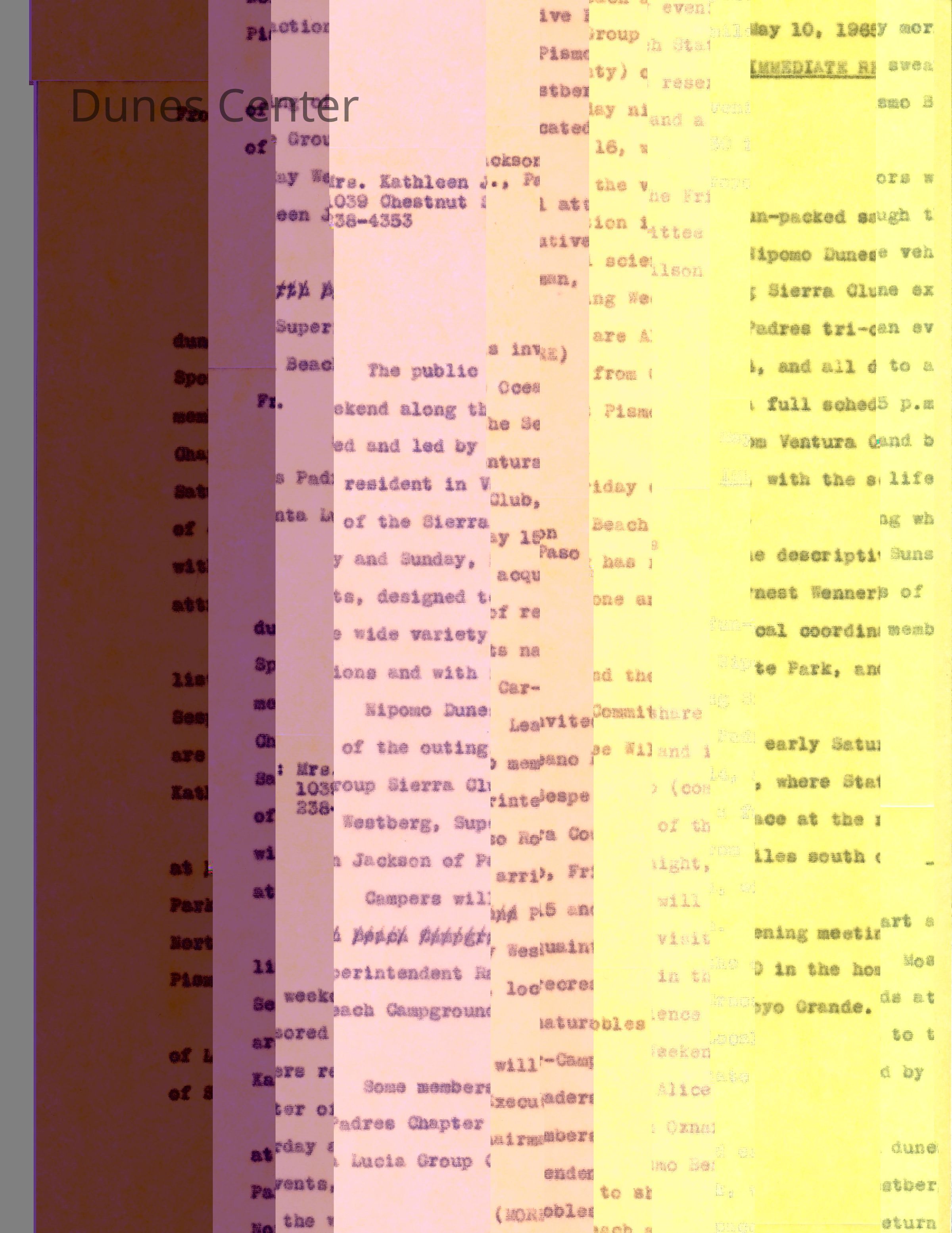 May 10, 1965, Press release from Kathleen Goddard-Jones about upcoming outings in the dunes.