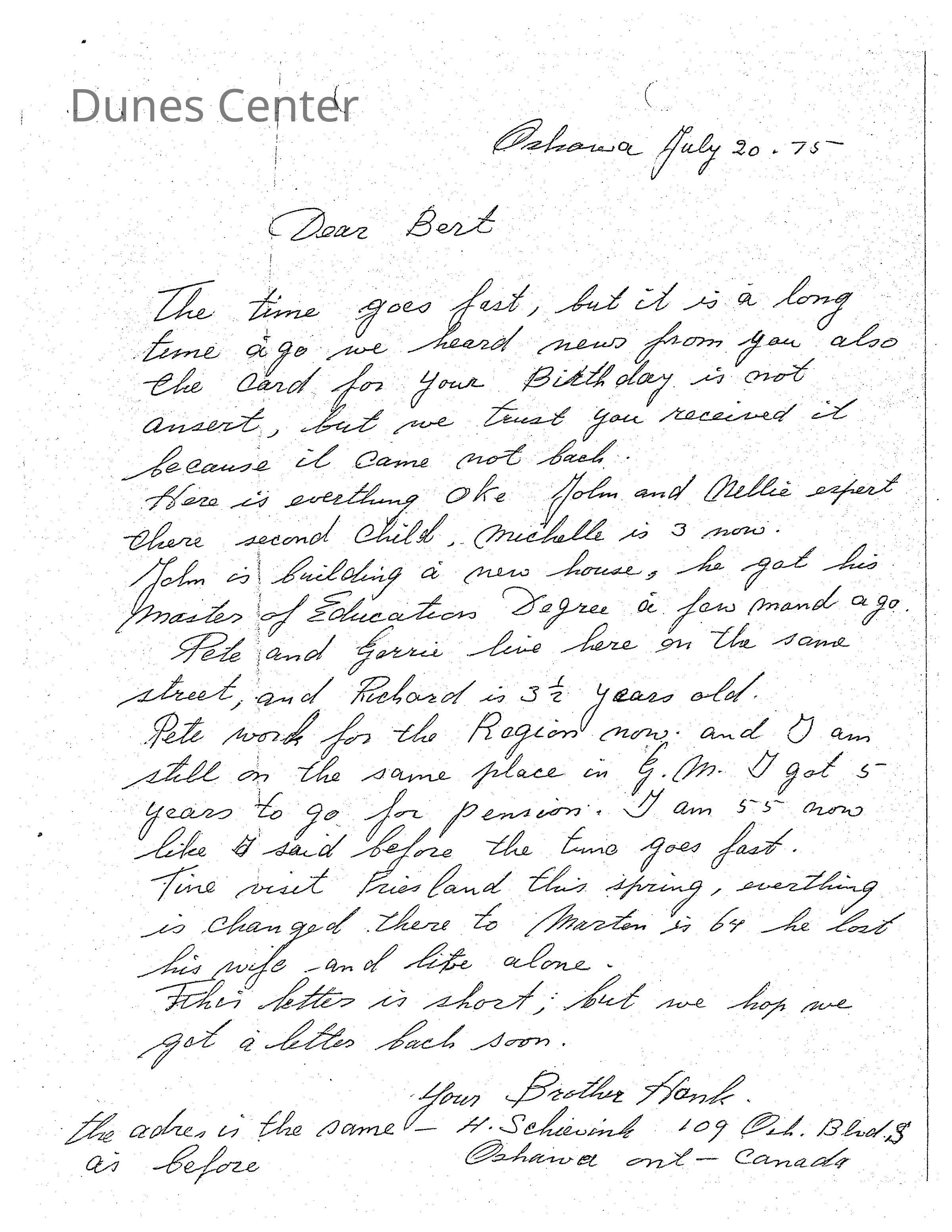 2023.01.55 - Letter to Bert Schievink from Angus Crites. - July 20 - 1975