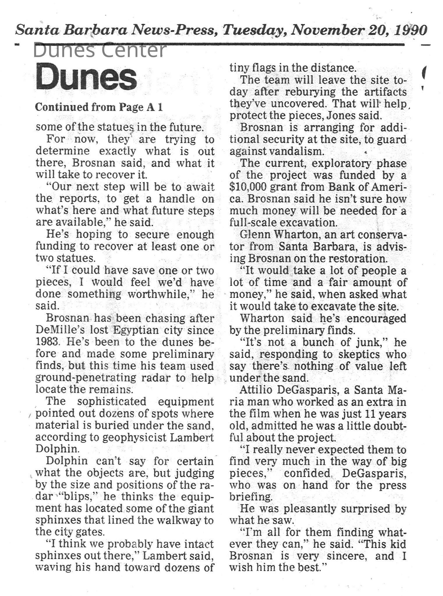Santa Barbara News-Press article November 20, 1990. Ten Commandments